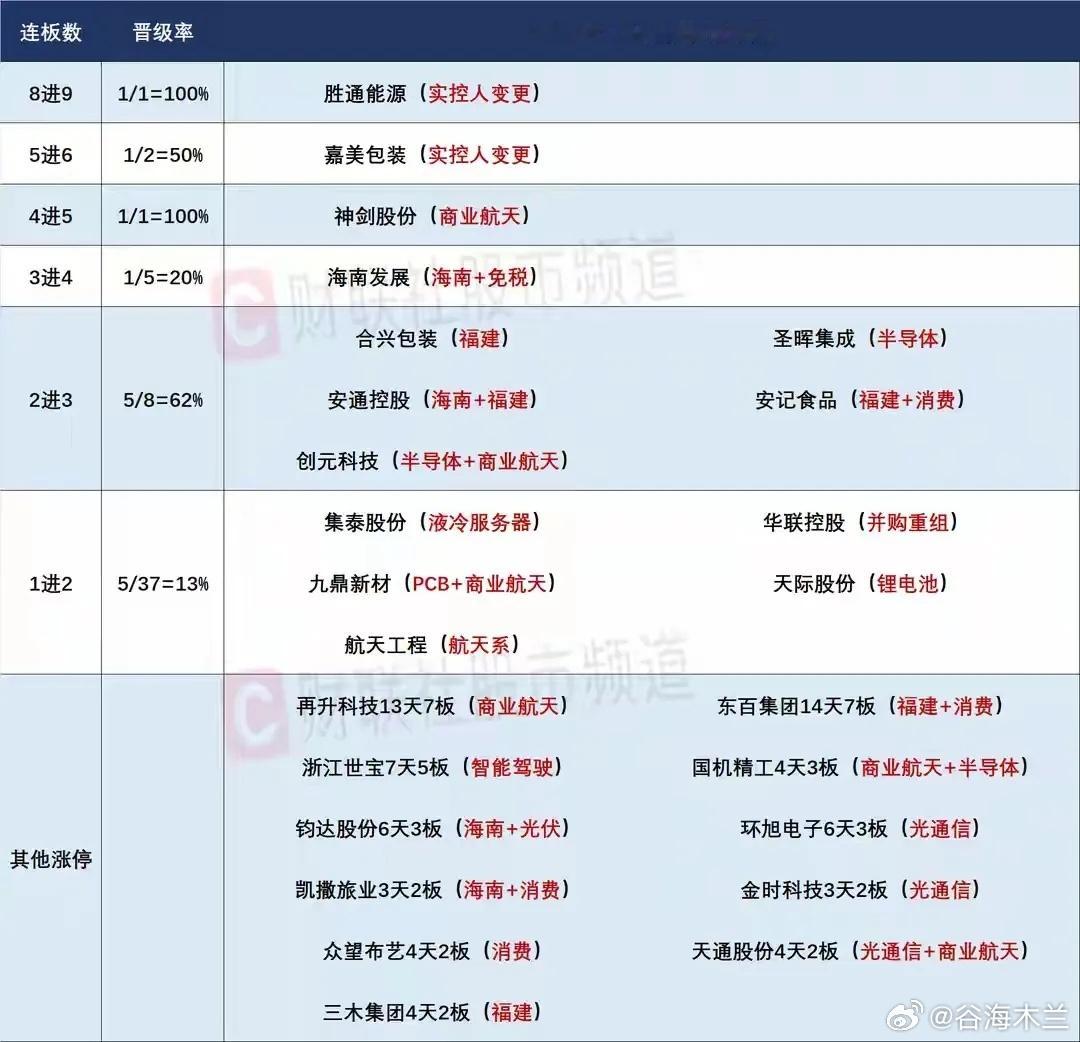12月25日盘前预案:连续小阳上行后大盘有回撤需求,短线思路依然是做好跟随!1、近期市场整体趋势是连续小阳线上涨,但是可以看到量能并没有太大的起伏,再加上短线核心方向就那么几个,所以虽然市场整体表现不错,但是赚钱效应并不好,而连续的小阳线突破后,短期的护盘目标已经完成,那么接下来整体出现震荡整理的概率还是非常大的,但是对于短线来说,指数并不重要,核心方向的情绪才是最重要的!2、胜通走出了9个一字板,但是它昨天的一字板已经放量非常明显了,而且它已经连续两天发再涨就停牌核查的消息面了,对于它的影响还是非常大的,今天一旦资金继续顶一字板,停牌是板上钉钉的事,毕竟它跟之前的天普非常像,而天普最终是走到15板高度,中间有过两次停牌核查,但是相比天普第十三板才放量,胜通是要明显偏弱的,所以它今天是有开板需求的,就看资金早盘整体承接的力度了,如果依然非常强,它很可能走出类似天普的T字板形态,但是盘后会不会直接停牌很难说,总之,这只个股没有先手优势更多的作为短线高度的风向标,毕竟市场很久没有个股挑战严重异动后还能持续表现,胜通虽然算是重组方向,但是同时也代表了资金的态度,所以接下来主动挑战严重异动的个股的表现能不能逆转是一大看点!3、商业航天在长征12甲回收失利后出现大幅调整,但是昨天却出现了非常强势的修复,整个板块迎来了高潮表现,那么这个方向就依然是市场的核心,只不过个股的炒作完成了一定嗯高低切换而已,总得来说,在没有更强势的题材出来之前,这个方向的炒作持续性应该有所保证的!神剑连续两个烂板晋级后,昨天在板块高潮情况下强势晋级,今天虽然板块会有小分歧,但是它作为龙头,分歧接力的资金不会少,就看它开盘能不能继续强势去走出冲板表现了,总得来说,到了5进6高度,反而很难继续缩量晋级了,只要它开盘后就有明显的上板动能,那么在分歧中有承接封板的表现就很容易走成一致,风险反而不会太大!九鼎是这个方向昨天最强的涨停个股,是走出了开盘秒板的形态,隔日直接一字是大概率的,而它的表现对于整个商业航天方向会有一定带动作用,所以对于九鼎来说,一旦商业航天仅仅是小分歧,它就很难有接力的机会!航发是商业航天最早的龙头,它昨天尾盘差点出现了趋势封板,但是今天开始也面临严重异动,如果商业航天继续强势,它会不会去主动挑战异动呢?对于30个交易日200%严重异动,国晟控了几天没控住,航发会不会有类似表现会是一大看点,毕竟相比于国晟,航发的板块效应更为明显!再升是商业航天走出过6板高度的妖股,它本来周二脱离严重异动后有强势冲板的架势,奈何盘中长征12甲的负面消息影响太大,它当天大幅回落,昨天早盘它成为了商业航天修复最明显的个股,快速的缩量涨停代表着强势,但是这种短时间超过5连板的个股很难走出连续涨停的二波表现,所以它可能会持续趋势向上,对于这只个股,它的表现应该和神剑共存,就像之前的东百和百大的关系一样!航动在高位横盘后走出了一个突破板,它能不能走出继续向上的趋势看点也非常大,不过这只个股想要连板还是非常困难的,除非板块继续高潮!卫星就是十足的中军表现,近期多次涨停炸板后终于在板块高潮时封死涨停,它能不能稳住趋势是商业航天整体趋势的风向标,它就相当于当初航电在板块的位置!4、零售方向整体虽然表现不佳,但是东百和百大两只强势股继续强势,百大今天脱离严重异动,它的表现就非常关键,如果开盘主动走强,那么烂板的东百表现就非常值得期待,毕竟一旦板块修复,这两只个股作为龙头自然表现就不会差,而一旦这两只个股集体拉胯,那么整个零售继续回调在所难免!5、海南自贸区方向在高潮后逐渐走弱,发展能不能继续强势下去跟板块的整体修复关系非常大,如果整个海南方向开盘主动修复,那么发展或许会有一个不错的结果,它毕竟算是龙头,之后走出类似华菱的表现概率还是非常大的,只不过海南自贸区方向容易暴涨暴跌,所以它的接力真的不好把握,如果今天早盘有上板动能,能不能去更多的取决于海南方向的共振跟随力度!6、世宝同样没有板块效应,但是它整体趋势非常好,这只个股是有二波概率的,就看开盘会不会有资金强势做多弱转强了,毕竟它整体的位置和市值都是比较适合二波炒作的,一旦板块共振上涨,它的表现非常值得关注!天际这个二板有些孤单,但是如果碳酸锂期货早盘继续强势,天际或许依然有资金会强顶,毕竟昨天的放量涨停已经释放了足够的套牢盘,一旦早盘走出比较强势的冲板动能,它是真有可能走出来的,但是前提是商业航天大分歧,板块轮动到锂电方向,天际就很可能走出二波表现!小胖停更了两天确实有些懒惰,早盘预案发的有点太晚了,请见谅。实盘之后可能会不发了,毕竟不认同的声音太多了,小胖不是圣人,不可能无动于衷,喜欢看的朋友请见谅!本文只限于分享和交流,不构成投资建议,股市有风险,投资需谨慎!