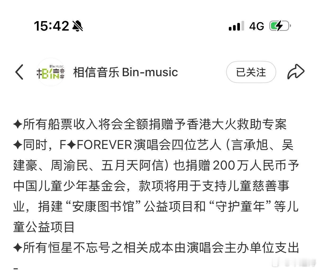 朱孝天爆料五月天公司昨晚还刷到网友们讨论这场演唱会是需要把个人收入捐出去还有演唱会船票要捐,难怪朱孝天不要去…