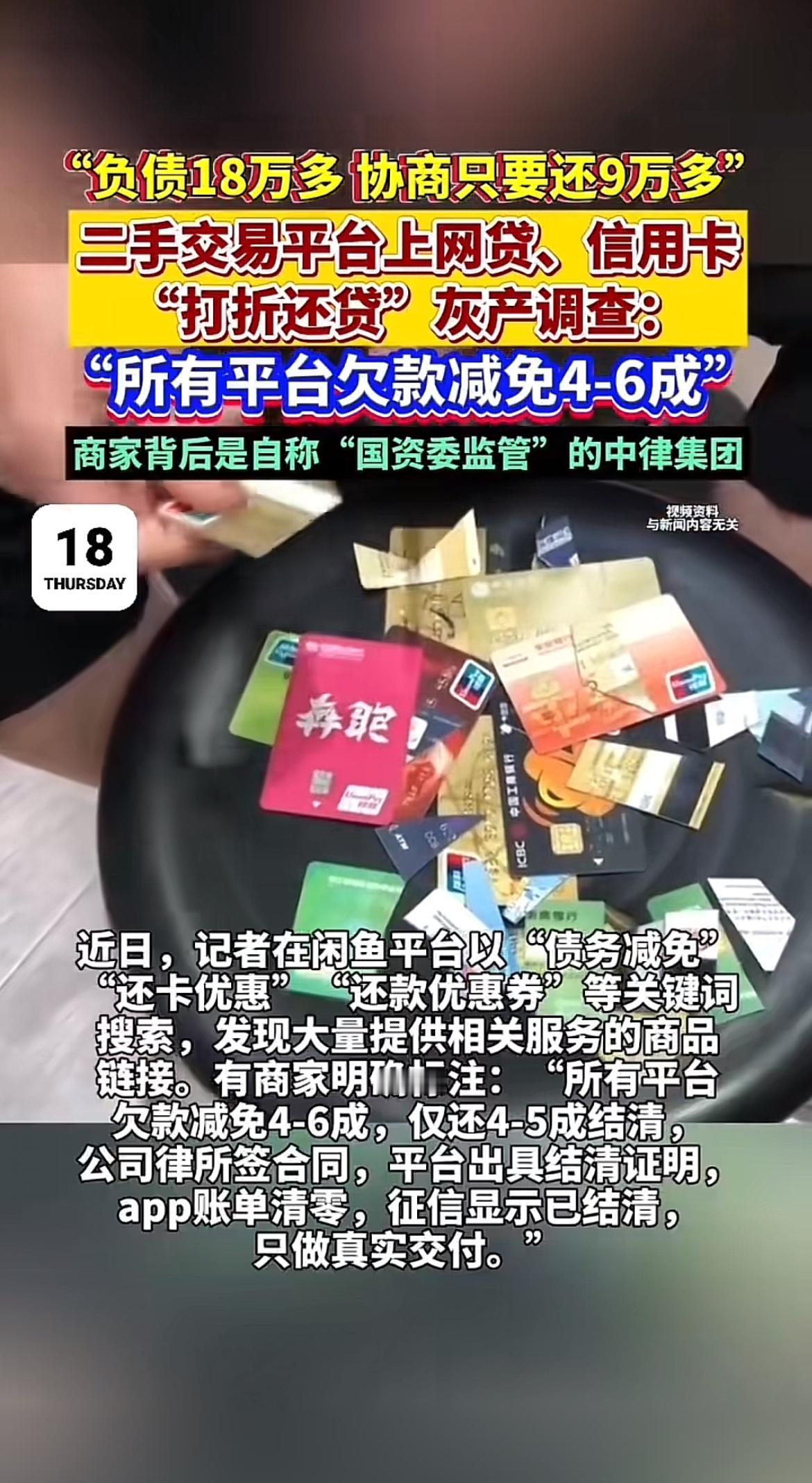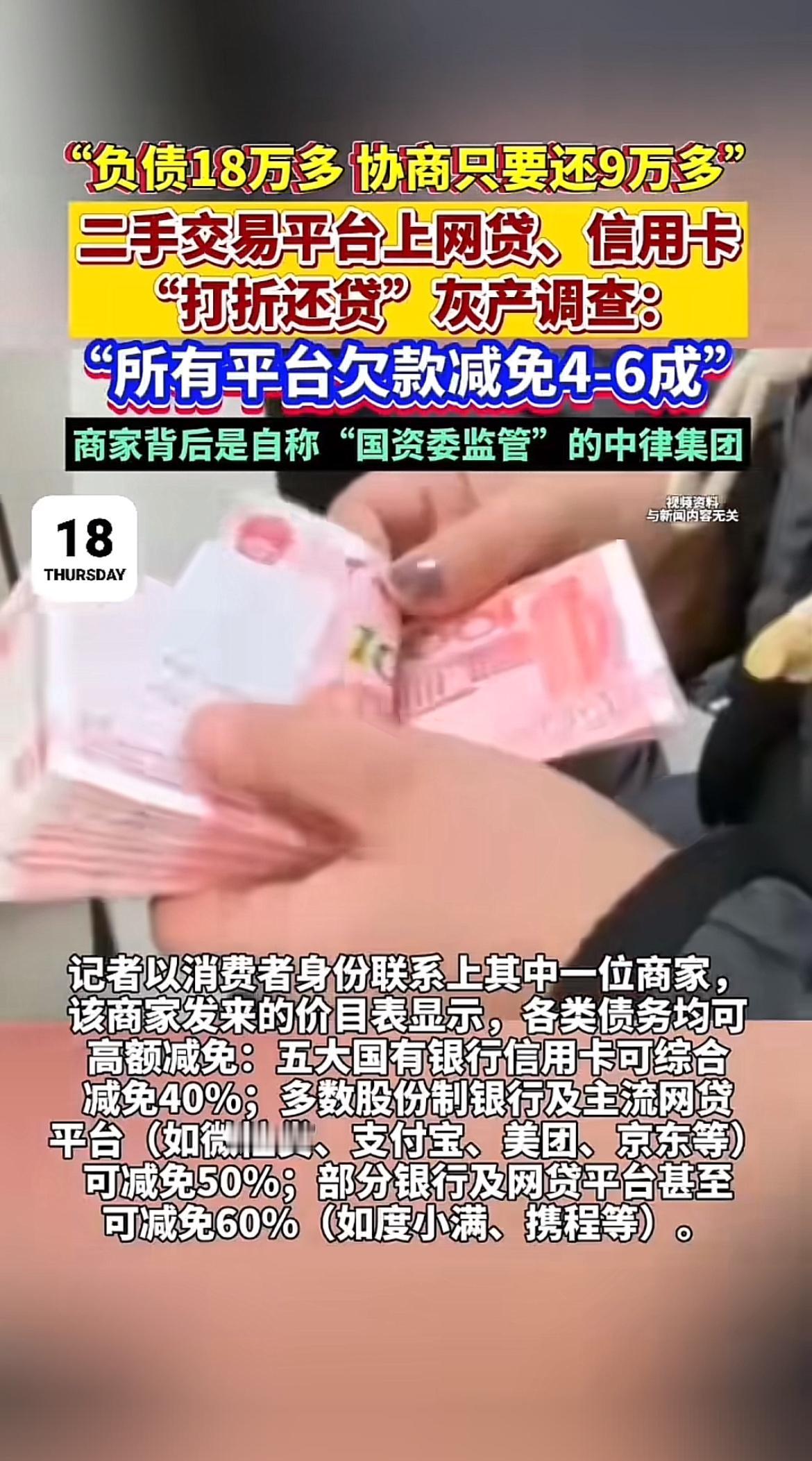 现在二手交易平台上的网贷“打折还贷”灰产太火了。广西的杨女士负债18万多,通过一家自称有“内部渠道”的公司,最后只花9万多就结清了六个网贷与信用卡平台的欠款。在闲鱼等平台,“还款优惠券”“平台欠款减免4 - 6成真实结清”等广告到处都是。 记者调查发现,商家号称多家银行、网贷能打4 - 6折,像大行可减免40%,主流网贷平台能减免50%。这折扣力度确实诱人,但这到底是负债者的“救命稻草”,还是金融陷阱呢?大家可得擦亮眼睛好好辨别。