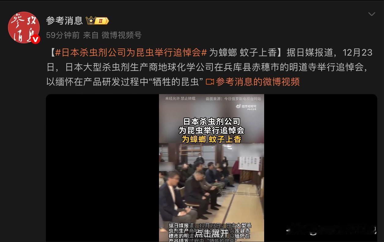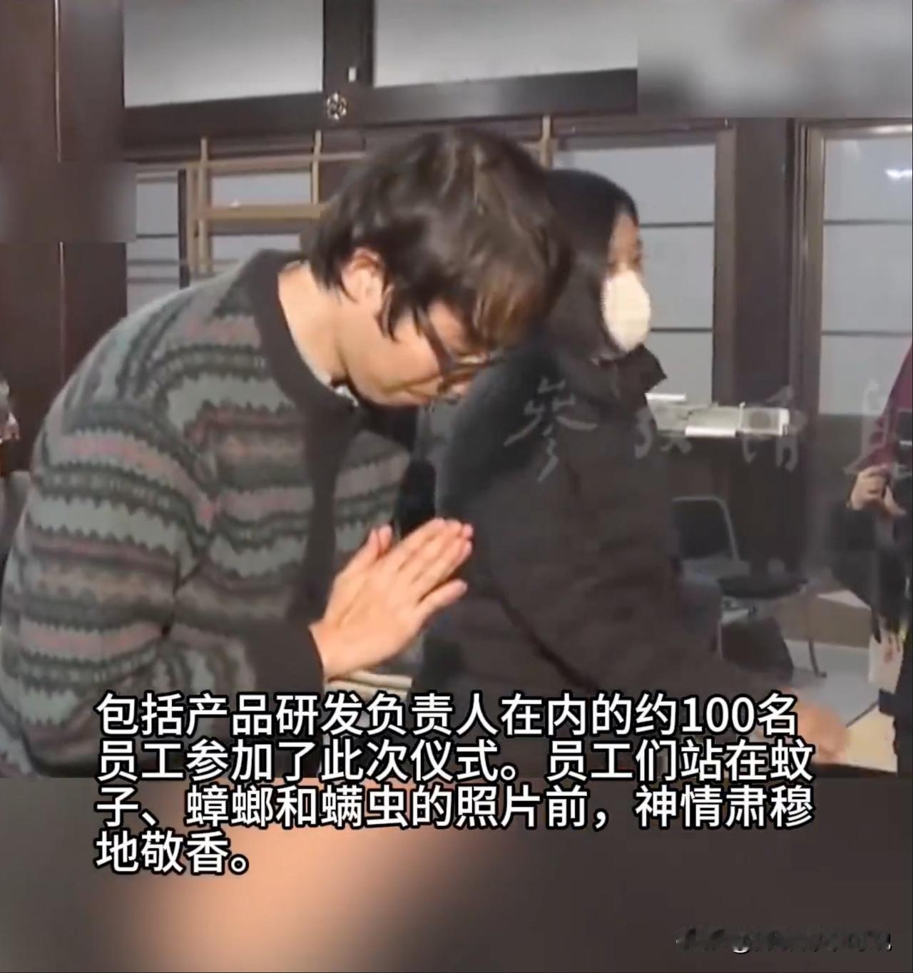 日本人的伪善面具又又又被展现出来了,什么叫虚伪、什么叫假仁假义,这个就是!事情是这样的,日本一家杀虫剂公司居然为那些在他们的杀虫剂试验中殒命的蚊子、蟑螂等昆虫举办追悼会。也就是说,我虽然杀死了你们、拿你们进行了惨无人道的实验,那都是逼不得已的。看,我们多善良,我们还给你们鞠躬、举办追悼会并怀念你们。等这批杀虫剂制造好了后,它们就会被销往各地把你们的同类灭了!怎么样,这种假仁假义伪善掩盖下的丑恶嘴脸是不是特别熟悉?是不是一下子就想到了电影《731》里面的情节?