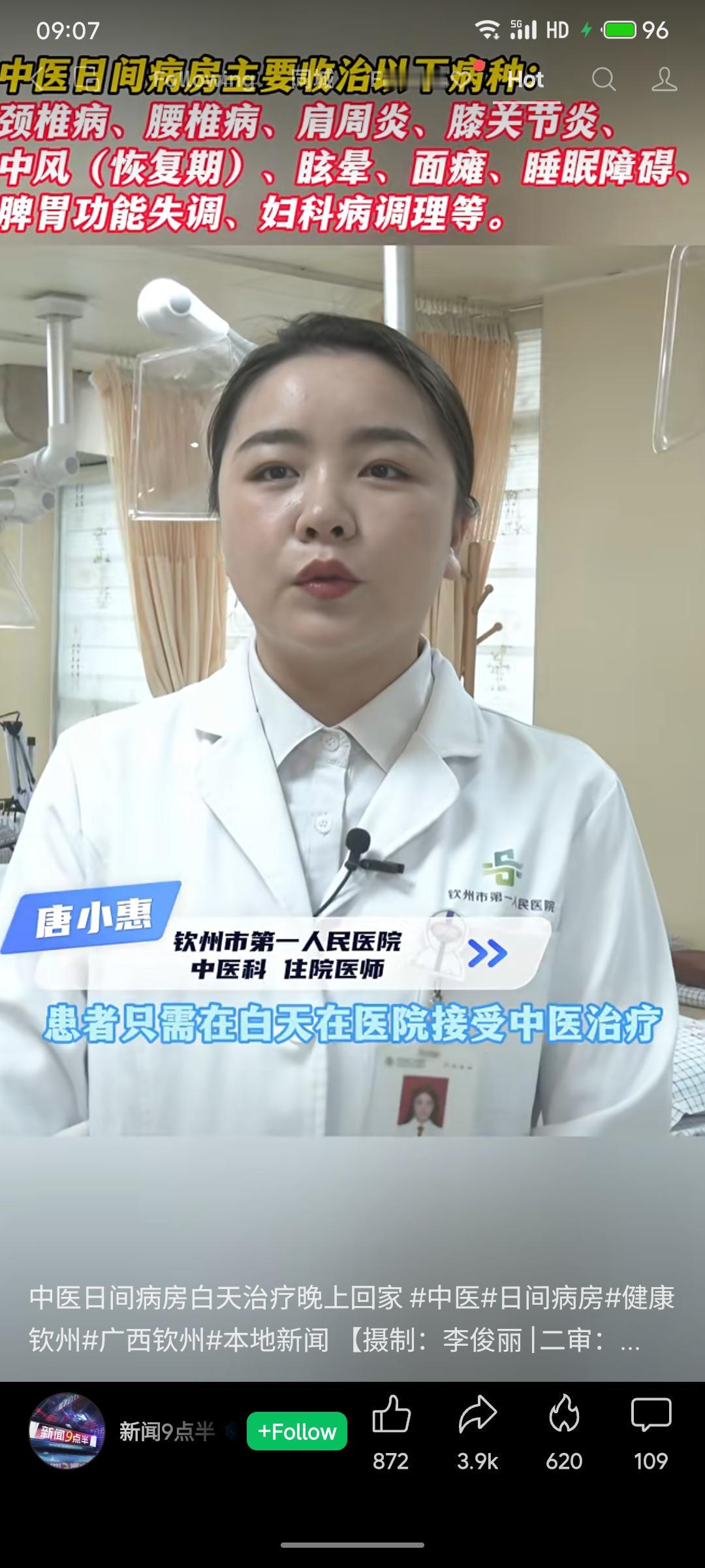 中医日间病房是一种新型诊疗模式,患者白天在医院接受针对颈椎病、腰椎病、肩周炎等病症的中医治疗,晚上可回家休息。其治疗费用按普通住院结算,医保报销比例与常规住院一致,不额外降低。