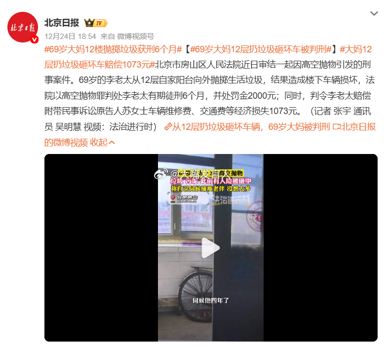 女子嫌等待时间过长扇医生耳光被拘 这个拘留5天。69岁大妈12楼抛掷垃圾获刑6个月 这个判刑半年。男子性侵醉酒女子并发文炫耀获刑 这个判刑3年2个月。都是今天看到的案件女子嫌等待时间过长掌掴医生,69岁大妈12层扔垃圾砸坏车被判刑,