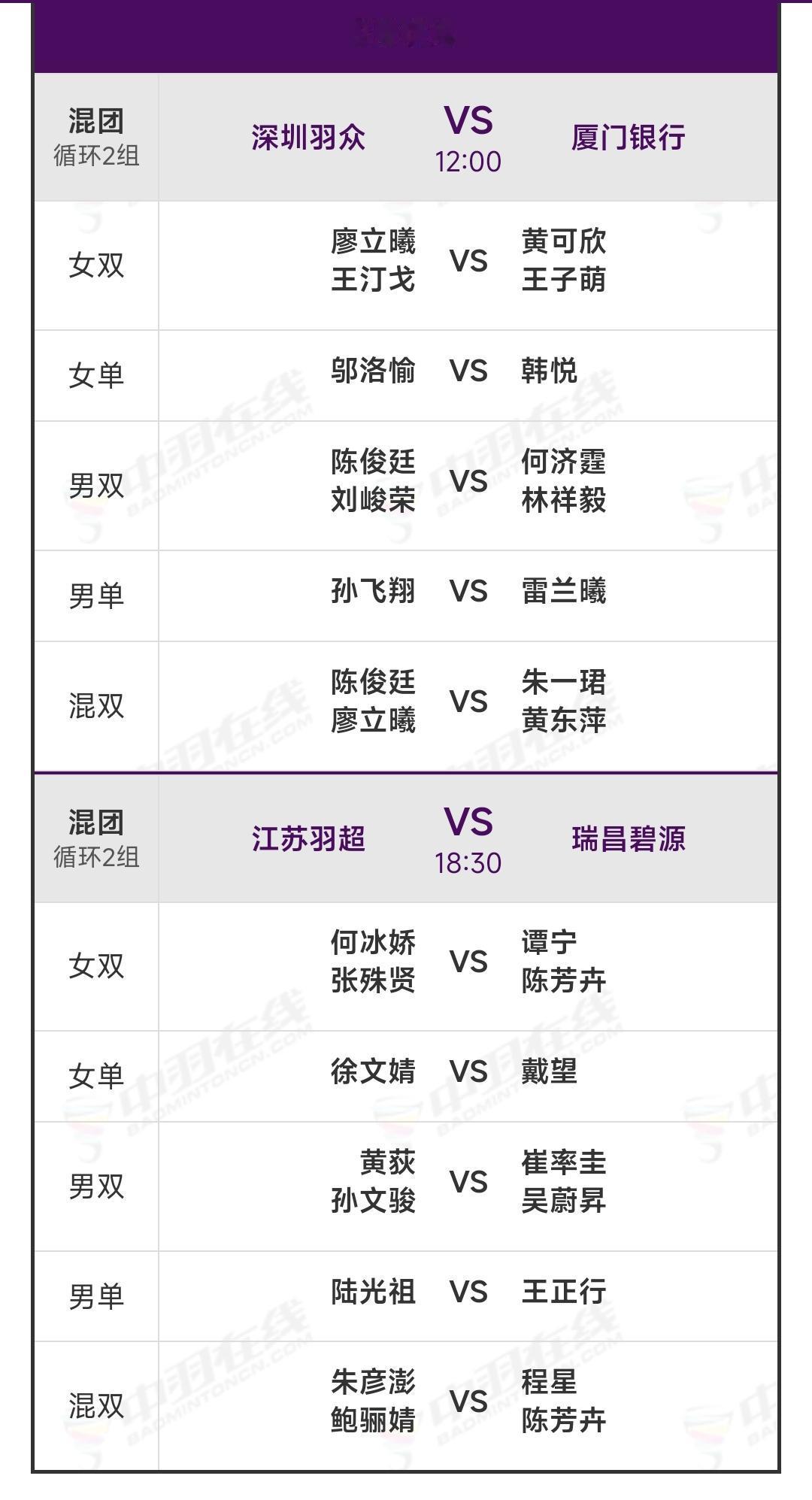 刚刚在世界羽联年终总决赛上夺冠,还创造了赛季冠军数历史的徐承宰,并没有回韩国。作为浙江竞体俱乐部的外援,他随俱乐部来到芜湖,参加羽超联赛最后一站的常规赛。 浙江俱乐部目前排名垫底,签了徐承宰这个大腿,俱乐部再不用就没机会了,徐铁人这站估计要场场兼项了。不管结果如何,球迷过瘾就完了! 今晚对阵主场作战的芜湖兴航,浙江竞体志在必得,陈雨菲、徐承宰全都登场,男单胡哲安、女双陈樊淑湉/吴梦莹也都有拿分的希望。 今晚6:30,1号场地,芜湖兴航对阵浙江竞体。对阵如下: 彭梓芯/唐睿芝-陈樊淑湉/吴梦莹 罗盛萱-陈雨菲 刘毅/刘阳-徐承宰/王昶 董天尧-胡哲安 高家炫/唐睿芝-徐承宰/吴梦莹