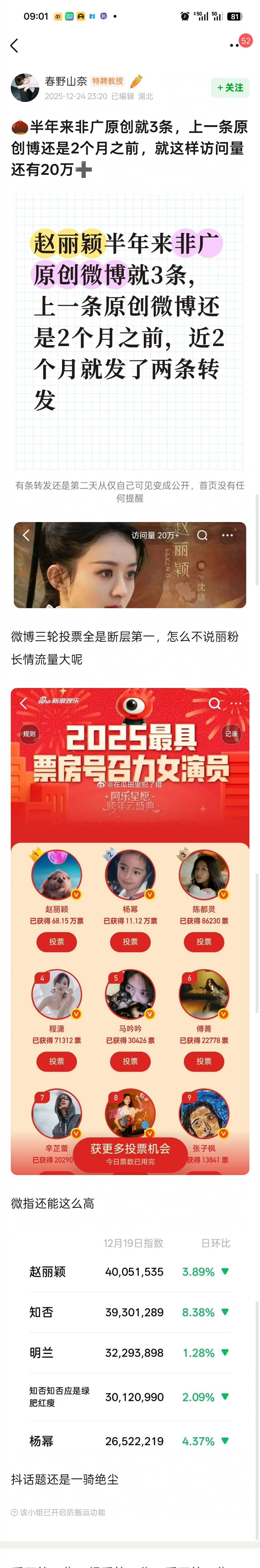 赵丽颖这种咖位也被嘲流量了? 她上一条原创还是在两个月以前。们真是够了。。。。