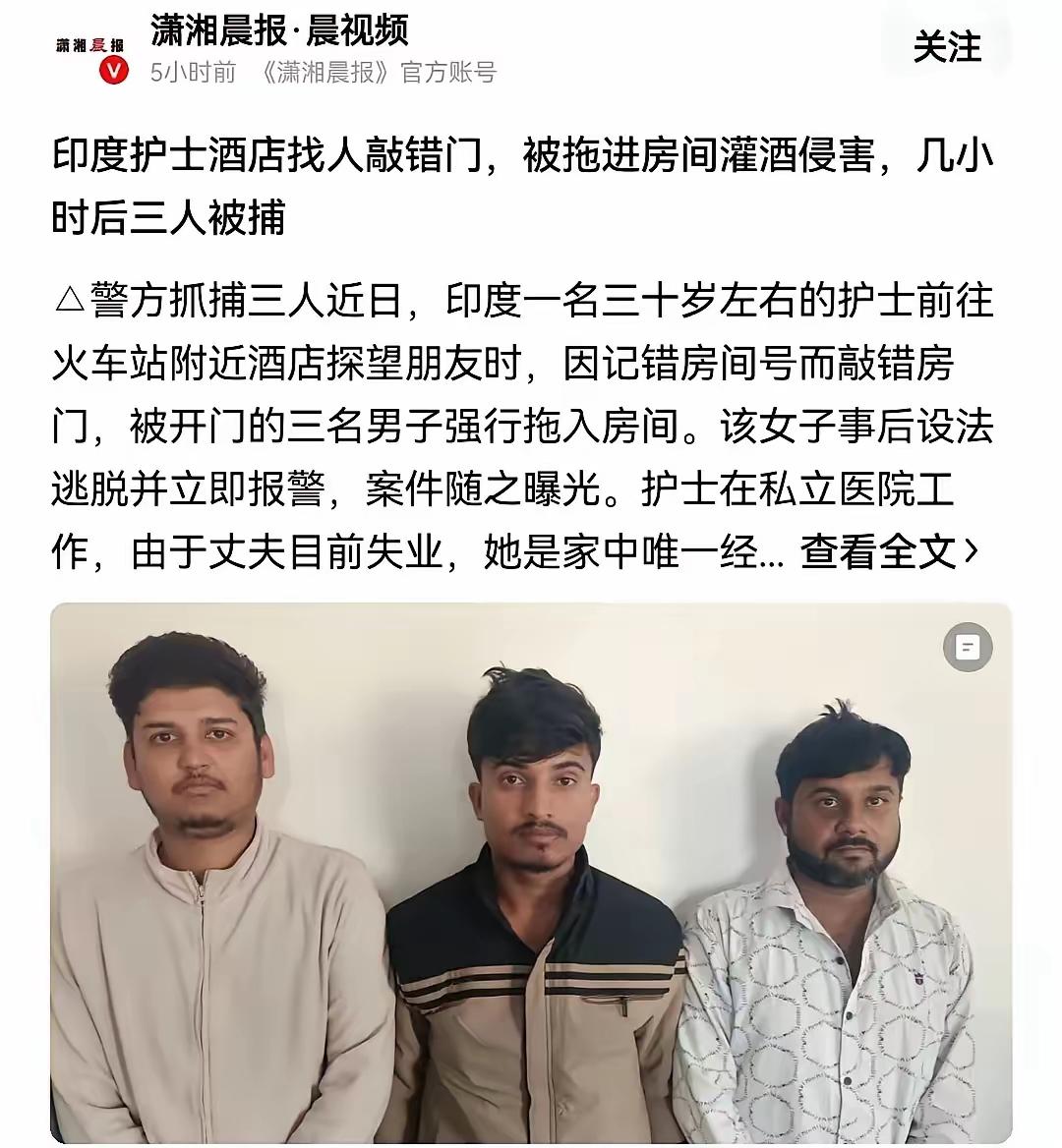 一则让人愤怒的新闻刷爆了社交平台!印度一名女护士,就因为敲错了酒店的房门,竟被三个男人硬拽进房间,灌了酒还对她实施了性侵。等他们的身份一被扒出来,大家更气坏了:银行职员、在读硕士,这些本来都是该懂法守法的人,却用暴行把文明社会的遮羞布都给撕烂了。 学历和道德怎么会这么脱节?这三个败类用行动证明:知识能装在脑子里,可良心不一定能刻在心里。他们一边显摆自己的高种姓身份,一边干着最丢人的事,简直就是对印度社会等级制度的天大讽刺。 更让人害怕的是,这种事在印度不是孤例。有数据显示,每15分钟就会发生一起性侵案,但能定罪的还不到30%。法律成了摆设的时候,那些施暴的人就更敢胡作非为了。那个在绝望里拼命挣扎的女护士,不过是无数沉默受害者里的一个例子。 我们忍不住想问:在种姓制度和男权思想的双重束缚下,印度女性的安全底线到底在哪里?点亮❤️让更多人看到,文明可不能成了某些人伪装自己的遮羞布啊! -search.byteimg.com/img/labis/d49c538c38e607839029315f9d67793d~480x480.JPEG性侵案 女生遭性侵 性侵 印度性骚扰 印度少女强奸案 三女子性侵男子 印度性侵女童