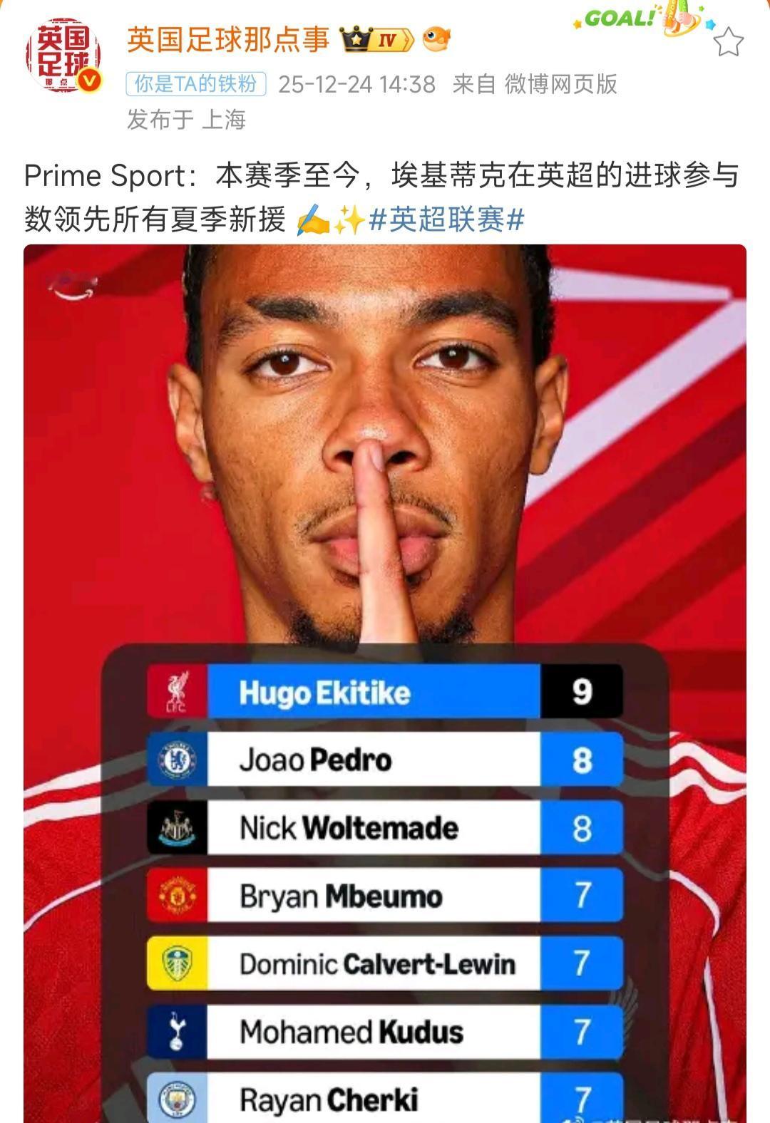 埃基蒂克总算让利物浦扬眉吐气,不至于夏季引援全崩! 天下足球这两天评选出2025年失意阵容。 利物浦的伊萨克,维尔茨,凯尔凯滋都入选,锋线,中场,后卫都有。 就在全世界嘲笑的时候,起码埃基蒂克表现不错,让利物浦稍稍缓口气。[笑哭]