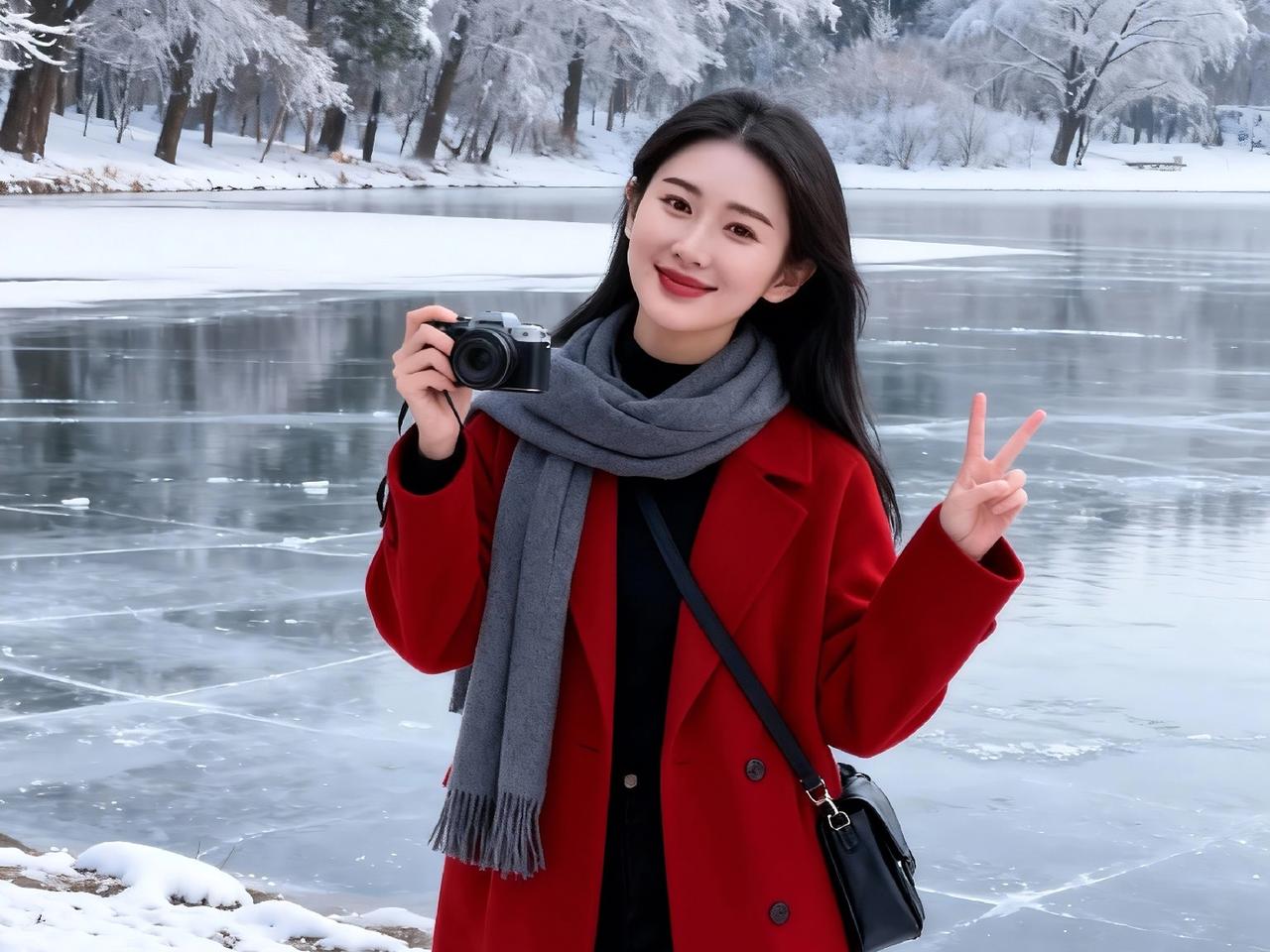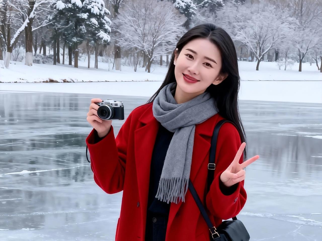 沁园春·雪日游园 雪覆长堤,冰锁寒湖,雾凇堆枝。看红衣一袭,鲜妍破白;青丝垂肩,笑靥凝脂。手举相机,轻比耶字,欲把冬光入镜迟。林间路,有琼花漫落,沾了襟丝。 闲来偷得浮生趣,算人间清欢最是斯。莫说冬深寂,寒溪有韵;树头雪软,风也温柔。偶立冰边,听松涛细,恍觉尘烦都散之。归途里,把一怀晴好,藏进诗思。 行至亭前还驻脚,指缝间偷瞄云影移。想平生多是匆匆走,难得这般闲,与冬相嬉。折枝雪柳簪鬓角,学孩童踩碎琼瑶迹,惹得林间雀,惊飞两三只。方知岁月温柔处,不过是眼前雪,身边风,心上怡。原创诗词