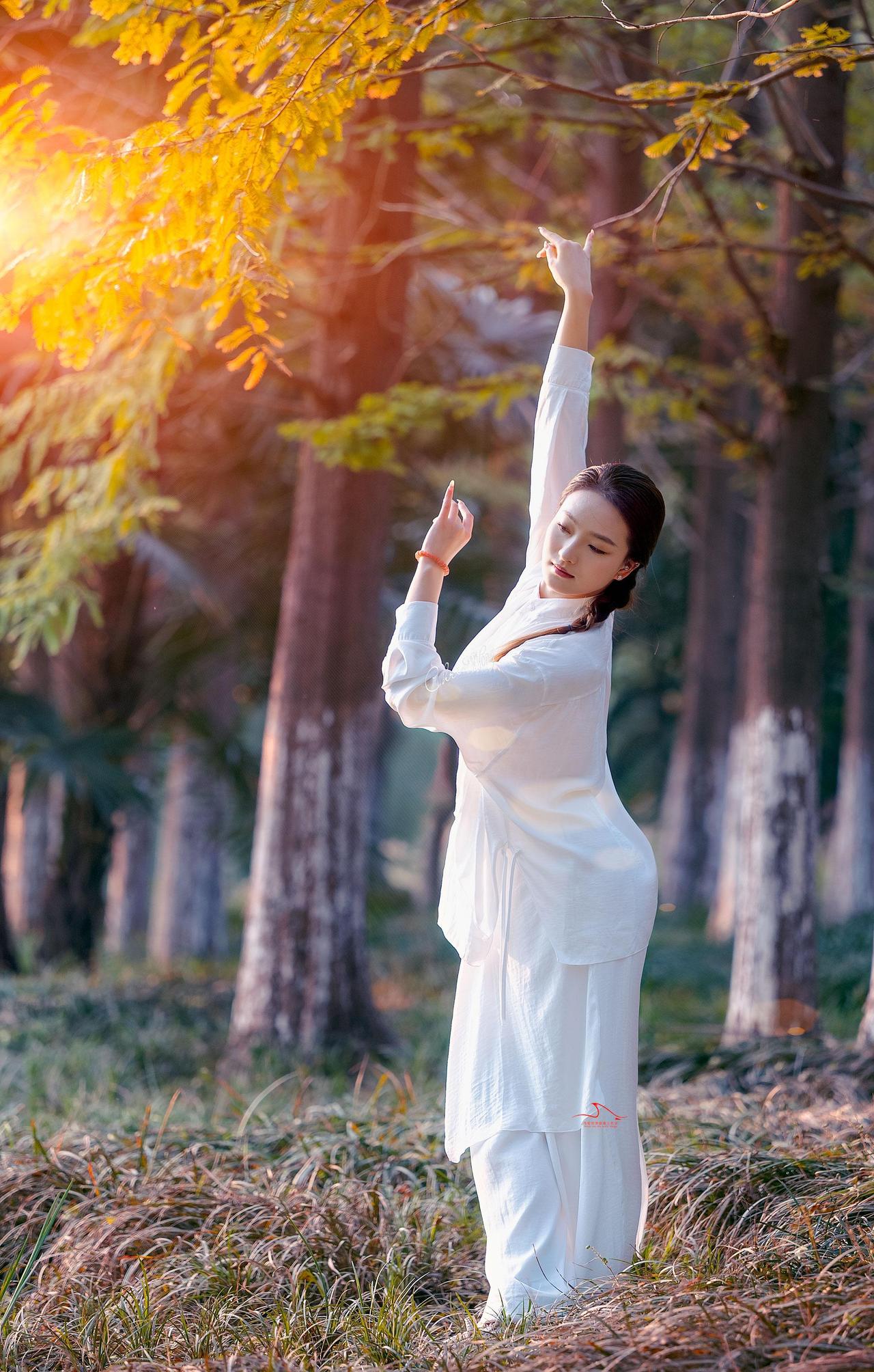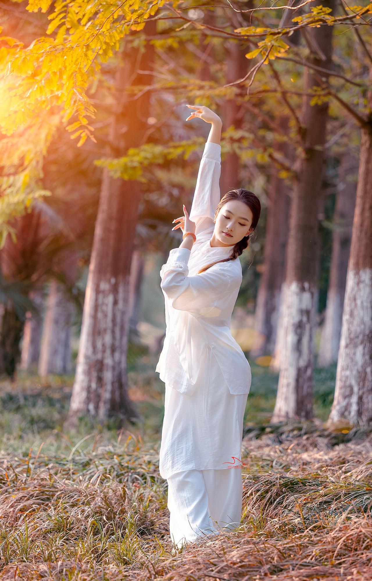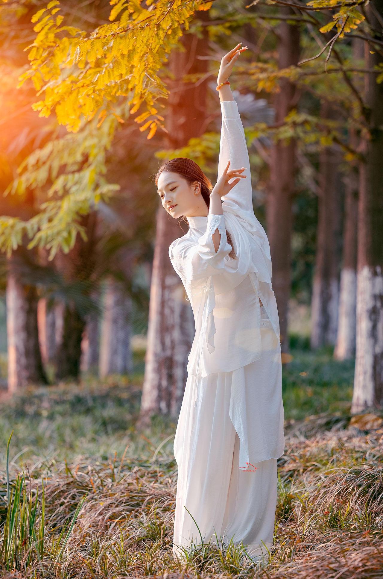 沁园春·林畔舞影 林杪摇金,夕照穿枝,碎影铺阶。看白衣轻展,如烟漫卷;纤腰微转,似柳初裁。 手挽流光,指拈霞色,一袂清风绕树来。林间静,只蝉声渐隐,秋意徐排。 闲来抛却尘霾,趁晚晴寻个自在怀。任步随云影,身依松籁;姿摹山月,态效溪苔。 不向人前,妄求喝彩,只与青山共此拍。斜阳里,把半生俗事,抖落苍苔。 行至树旁还凝伫,抬眸时恰有金风拂鬓钗。想人间忙忙碌碌,难得这般闲,与秋相拥,与影同舞。 转袖间碰落枝头黄叶,俯身拾来轻捻,竟觉这一叶秋光,也藏着岁月温柔。 方知心安处,不必在远方,只在这林间舞、风里笑、光里待的片刻。