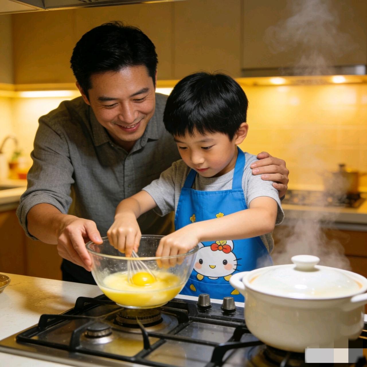 昨晚在外面办事,很晚才到家,推开门就闻见厨房飘来的香味儿,儿子正踩在小板凳上,帮他爸搅锅里的鸡蛋液,看见我就举着勺子喊:“妈妈快洗手,马上就能吃啦!” 喝完热汤,爷俩一个给我揉肩,一个拿小绘本坐在旁边念,窗外的风再大,屋里也暖乎乎的,这样安静、祥和、温暖的日子,就是踏实。