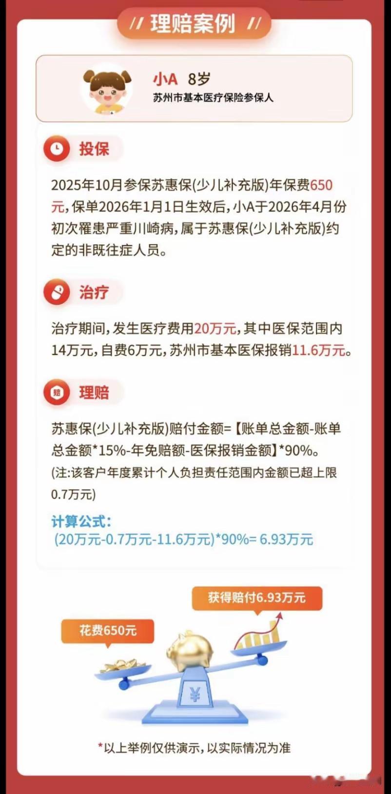 最近在家长群里唠嗑,发现咱们苏州这帮宝妈,愁的都是同一件事——家里七八岁的娃,正是皮得没边的年纪,天天上蹿下跳,磕磕碰碰那是家常便饭。一到换季更别提了,感冒发烧扎堆来,三天两头就得往医院跑。 虽说有基本医保能报一部分,但架不住跑医院的次数多啊,零零总总加起来的自费钱,对咱们普通家庭来说,真不是一笔小数目。每次看着孩子打针吃药遭罪,钱包还得跟着瘪下去,真是心疼得不行。 正愁眉苦脸聊着这事呢,群里有位宝妈分享了自家的参保经历,一下子就把所有人的注意力都勾住了——原来是苏惠保(少儿补充版)2026。 听她细说才知道,这个少儿补充保障由苏州市医疗保障局等多个部门指导,东吴人寿等多家保险公司联合承保,专门面向0-17岁、已经交了苏州基本医保的娃。 让大家觉得省心的是,参保方式很便捷。要是职工医保个人账户里的钱够,直接就能用这个钱给娃缴费,根本不用额外掏现金,给家庭减轻了不少即时支付的压力。而且保障期是一年,没有等待期,参保时间截止到12月31日,这点可得记牢了。 再说说大家关心的保障内容,这份保障把娃的健康需求考虑得很周全。门急诊及住院、特定疾病门急诊及住院、包含CAR-T的恶 性 肿 瘤特定药品费用、质子重离 子治疗,这些和儿童健康息息相关的项目全都覆盖到了。每项对应的保额有200万元,累计下来能有800万元,给娃的健康多添了一层守护。 还有些细节很贴心,必须跟大家念叨念叨。在咱们本市医保定点的社区医院,非既往症参保人门急诊和住院的医疗费是0免赔的,报销门槛比较低。让人放心的是,就算是有既往症的娃,也能参保,还能按约定申请理赔,不用担心理赔的时候遇到阻碍。 其实咱们当妈的,啥也不求,就盼着孩子平平安安的。现在有这么一份实用的补充保障,能帮着分担一部分看病的压力,心里能踏实不少。家里有符合条件的娃,还没办理的宝妈,不妨多留意下相关信息,结合自家情况了解了解,给孩子添一份健康保障,自己也能多一份安心。