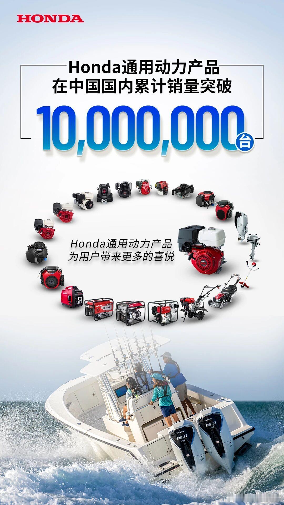 Honda通用动力产品在中国国内的累计销量突破1,000万台2025年12月,本田动力(中国)有限公司正式宣布,Honda通用动力产品在中国国内的累计销量突破1,000万台。汽场全开本田动力本田