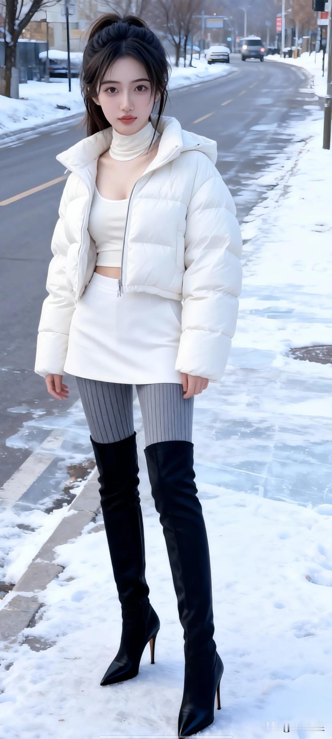 想穿着显身材,搭配和拍照姿势都有门道。穿搭上,焦糖棕针织衫配百褶短裙,自带慵懒时