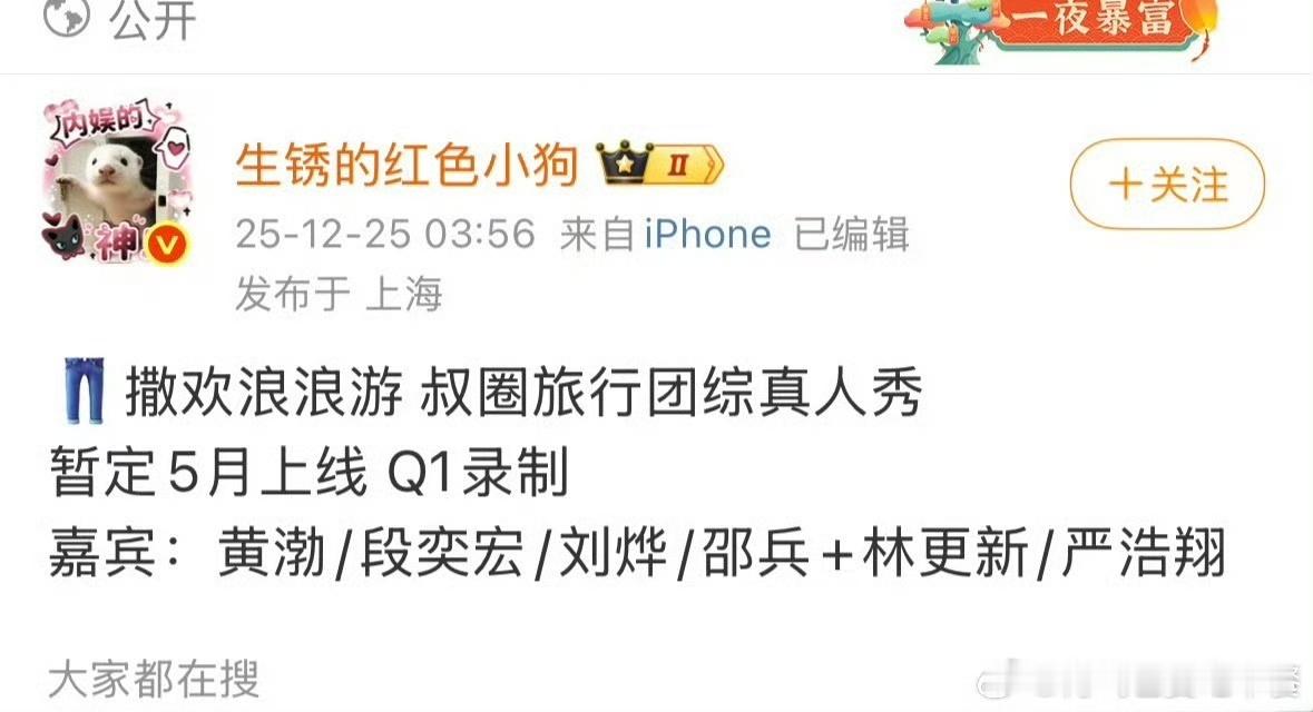 娱乐撒欢浪浪游拟邀严浩翔撒欢浪浪游阵容撒欢浪浪游阵容,叔圈和孩圈