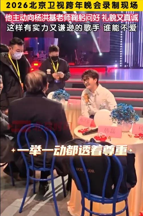 周深的礼貌与教养深入人心。北京卫视跨年晚会录制时,他主动向杨洪基老师鞠躬问好,还蹲下交谈。这般有实力又真诚的歌手,怎能让人不爱?