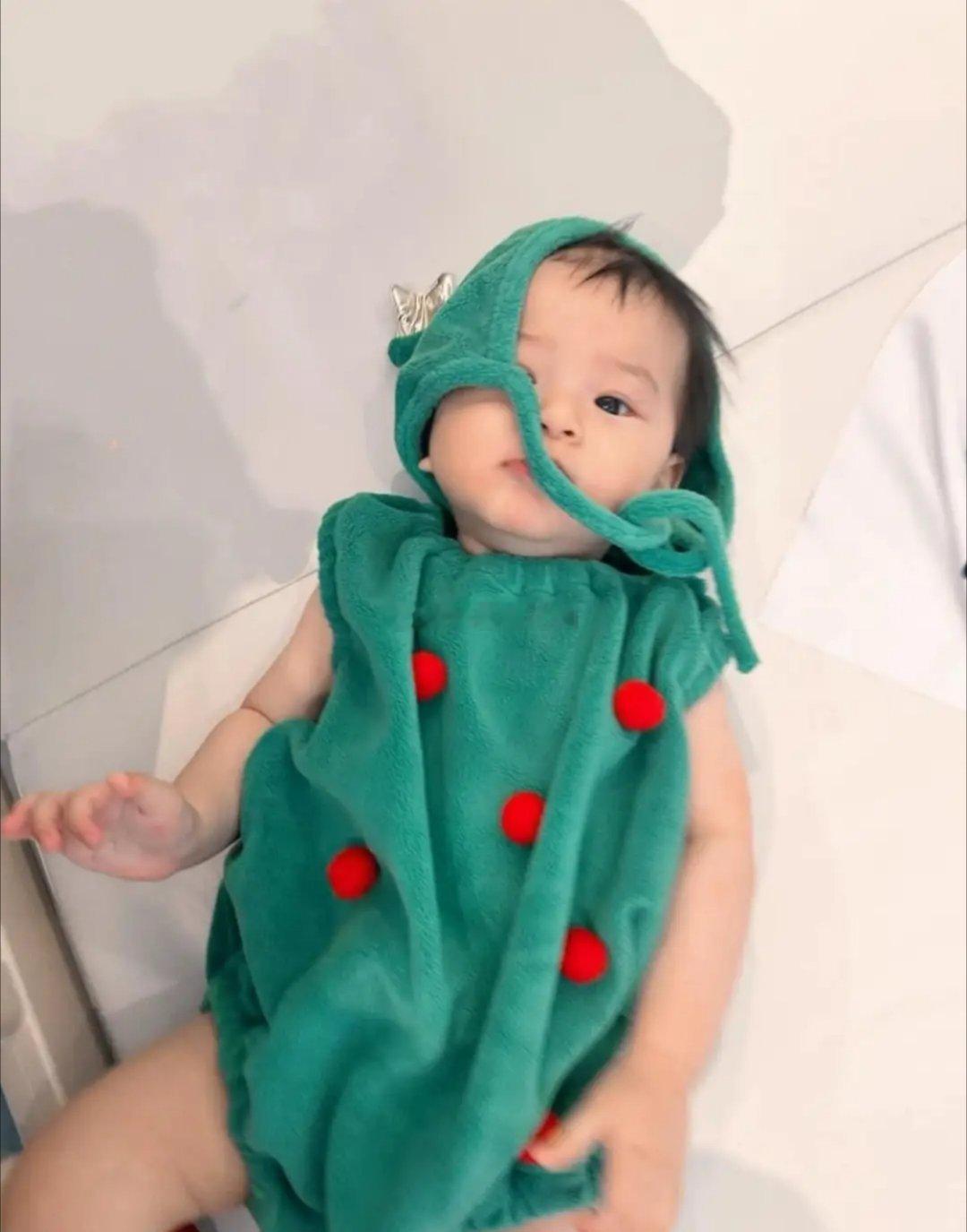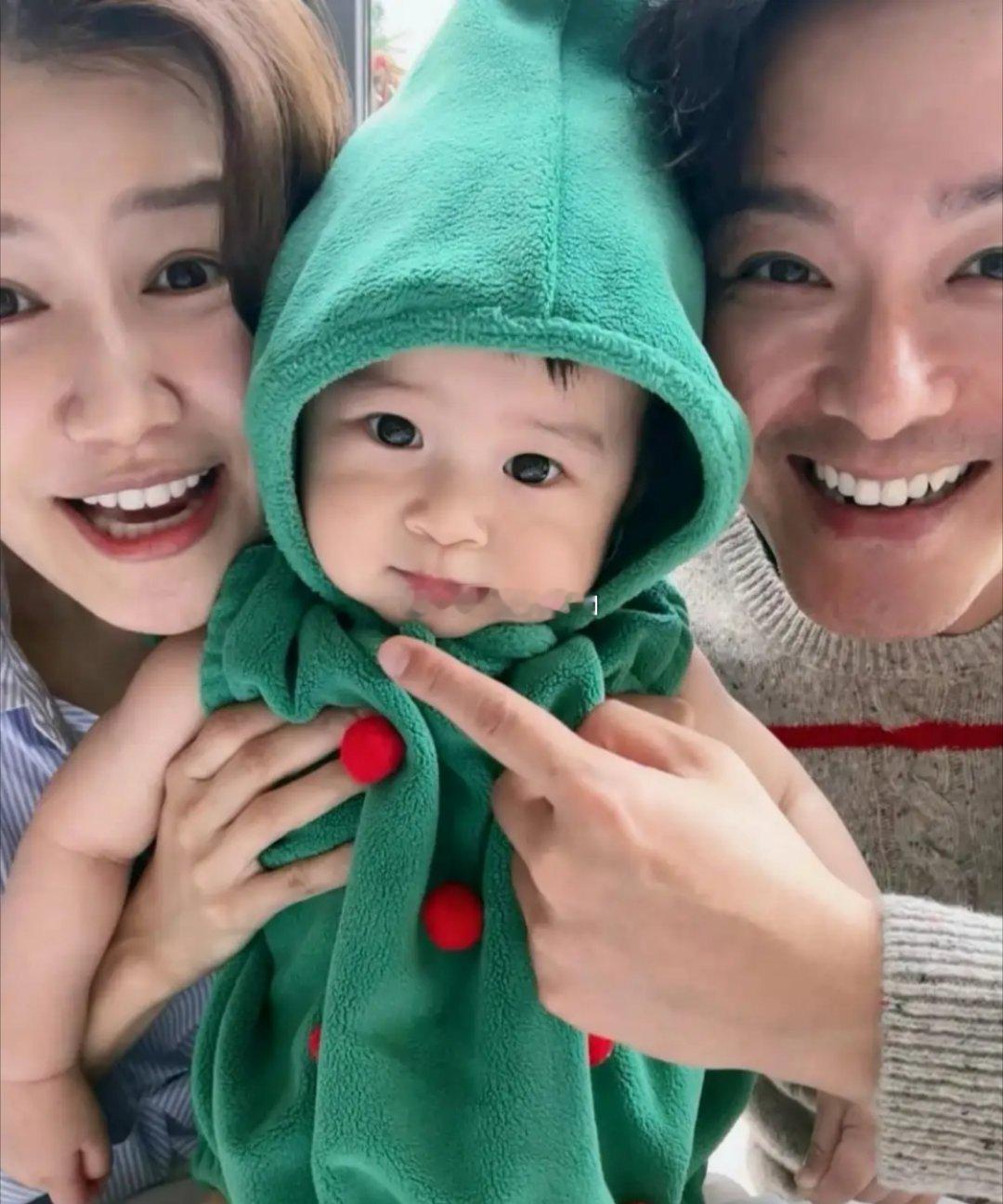 黄翠如晒全家福,9个月儿子圣诞树打扮软萌可爱, 一家三口幸福温馨!!!!!
