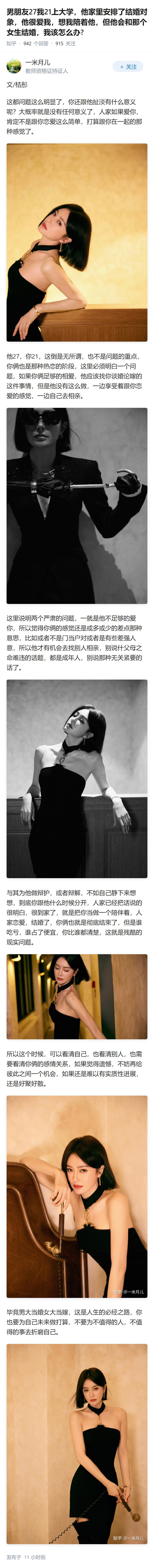 男朋友27我21上大学,他家里安排了结婚对象,他很爱我,想我陪着他,但他会和那个