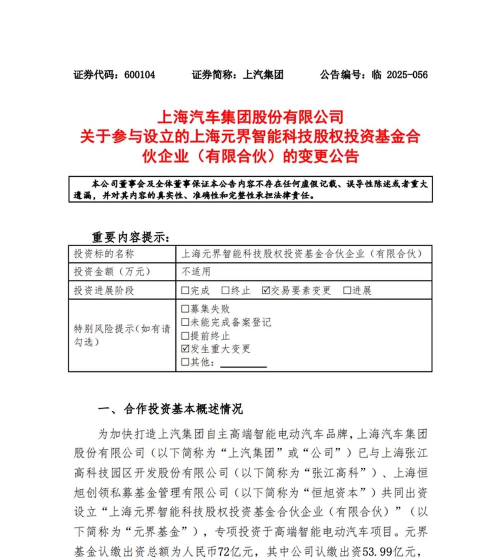 上汽智己股权变动! 原先通过元界基金持股,现在要变更为直接持有,目的是“简化股权结构” 元界基金原认缴总额:72亿元 上汽原出资额:53.99亿元(占74.986%份额) 变更后元界基金出资额:减少至18.01亿元 简单说,就是上汽不想再通过“基金”这个“中间商”来管智己了,要亲自下场,把股权关系捋得清清楚楚。 这对于智己未来的融资、决策效率,甚至资本化运作(比如上市),都可能是好事。 大家觉得这步棋是不是为智己未来的“冲刺”铺路呢?