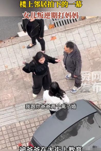 浙江一女生和爸爸当街吵架,结果,爸爸毫不留情,直接当众给了女儿两巴掌,还猛踹了女儿一脚,一开始路人还帮着女生说话,结果,当得知女生竟然打妈妈之后,态度反转说“教训得好”!网友:所谓的叛逆期,实际上就是惯的!   冬日的浙江街头,12月20日的这场冲突,并非毫无征兆的突发矛盾。   事件的导火索,是母亲对女儿花钱无度的几句念叨。   据现场围观者还原,母亲发现女儿近期消费缺乏节制,便随口提醒她“爸妈挣钱不容易,别乱花钱”,话音刚落,原本还算平静的女儿瞬间情绪失控。   她猛地甩开母亲的手,嗓门陡然拔高,紧接着抬手就向母亲身上打去,还顺势推了一把。   毫无防备的母亲踉跄着后退两步,险些撞到旁边停放的车辆。   这一幕恰好被不远处的父亲看在眼里,他瞬间冲了上去,一把拉住女儿,要求她立刻向母亲道歉。   可处于叛逆期的女儿丝毫没有认错的意思,反而梗着脖子与父亲激烈对吵,语气冲得厉害,完全不觉得自己动手打母亲的行为有任何不妥。   看着女儿这幅模样,再想到自己独自抚养她的艰辛,父亲的情绪彻底绷不住了,抬手就给了女儿两巴掌,还往她腿上猛踹了一脚。   动作不算特别沉重,却带着难以抑制的怒火,刚才还张牙舞爪的女儿瞬间蔫了下去,低着头站在路边,不再顶嘴。   冲突平息后,母亲看着沉默的女儿,一句“你爸爸对你怎么样?要是我和你爸离婚了,你好日子就到头了”的话语,更让这场家庭矛盾多了几分沉重。   现场围观者的态度变化,成为这场冲突中极具戏剧性的一幕。   冲突初期,看到父亲当众对女儿动手,不少路人立刻上前阻拦,语气急切地劝说“孩子再错也不能动手,好好说话”。   当父亲说出“她在家打她妈”的真相后,现场的气氛瞬间变了。   刚才还替女孩抱不平的人们,眼神变得复杂起来,原本的劝阻声渐渐消失,有人忍不住嘀咕,打妈妈?那确实该管管”,甚至有人直接对着父亲喊“该教,就得这么教训。   这段视频被传到网上后,更是掀起了两波完全相反的讨论热潮。   起初,仅看到父亲动手片段的网友,纷纷指责父亲的教育方式过于粗暴,不该在公共场合殴打孩子。   随着完整视频和家庭背景被扒出,舆论风向彻底逆转,“该教训”“打得对”的声音占据了上风。   不过,所有参与讨论的人都达成了一个共识:叛逆期的情绪可以理解,也能慢慢疏导,但对父母动手,绝对是不能碰的红线。   围观的邻居也忍不住感慨,正常人家有矛盾都会关起门来解决,不会在楼下闹得人尽皆知,这场街头冲突,早已超出了普通家庭矛盾的范畴。   这场看似简单的街头冲突,实则是一个离异家庭系统失衡的集中爆发。   知情人透露,这对父母早就离婚了,女孩一直跟着父亲生活,父亲是家里唯一的顶梁柱,每天天不亮就出门干活,晚上摸黑才回来。   起早贪黑地打拼,就为了让女儿吃穿不愁、能安安稳稳读书,他从没让女儿受过半点委屈,却没成想,女儿不仅不感恩,还因为母亲几句念叨就动手打人。   在这个家庭里,我们能看到多重矛盾的叠加:父母离异后紧张的关系残留、父亲独自抚养的巨大压力、亲子之间有效沟通的彻底缺失。   父亲的教育方式显然存在问题,他把所有的爱都倾注在物质满足上,却忽略了对女儿的品德教育和情感疏导,最终在情绪崩溃时选择了最笨拙、最不可取的暴力方式解决问题。   而女儿之所以会做出动手打母亲的极端行为,一方面是叛逆期的情绪失控,另一方面也是长期缺乏家庭温暖和正确引导的结果。   她把家人的包容当成了理所当然,忘记了最基本的底线,不能伤害长辈。   如今很多家庭都面临着类似的教育困境,尤其是离异家庭,家长独自抚养的压力、与孩子的沟通缺失、隐藏的家庭矛盾,都让教育变得格外艰难。   传统的“棍棒底下出孝子”理念早已不适用于当下,现在的孩子接触的信息多、主意也大,单纯靠打骂根本解决不了问题。   这场两败俱伤的街头冲突,没有任何赢家。   父亲失了风度,用暴力破坏了亲子关系;女儿伤了尊严,可能会在心里留下难以磨灭的阴影;而围观的所有人,都只看到了一场失败的家庭教育实录。   当镜头关掉,舆论散去,留给这个家庭的,是如何修复亲子关系、搭建沟通桥梁的难题。   而对于更多家庭来说,这起事件更是一个深刻的提醒,叛逆期不是亲子对抗的“战争”,而是学会理解与包容的契机,从“两败俱伤”到“双向修复”,需要整个家庭共同努力。   家长要守住教育的底线,即便再生气,也不能选择暴力方式,情绪激动时先“停手降温”,再坐下来和孩子理性沟通。   孩子也要明白,家人的包容不是无限度的,叛逆不等于放纵,要懂得尊重长辈,学会用合理的方式表达自己的情绪,而不是用暴力宣泄不满。