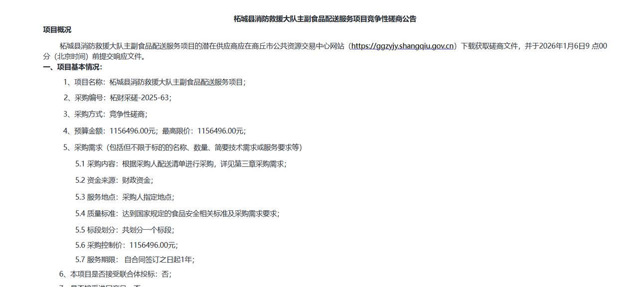 柘城县消防救援大队主副食品配送服务项目招标公告,预算115.6万元