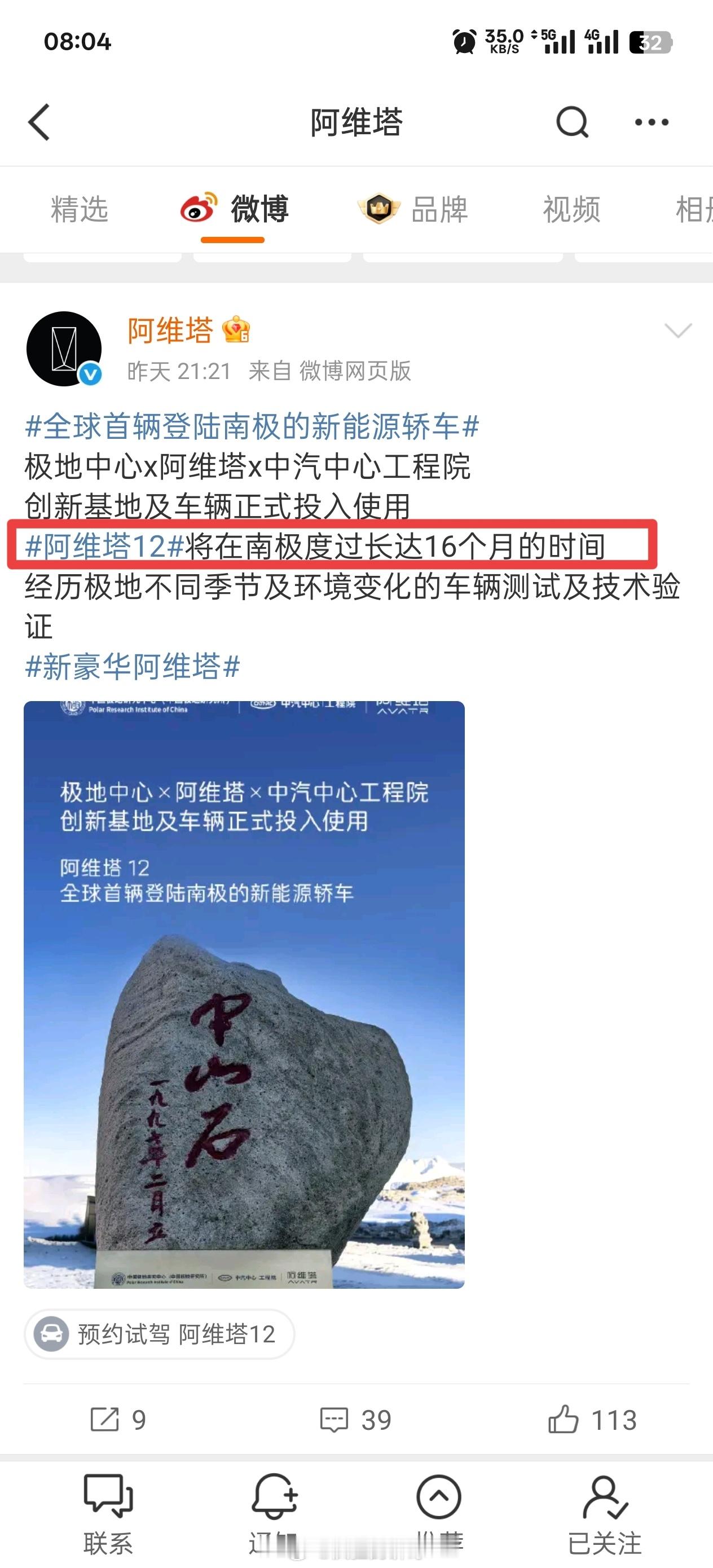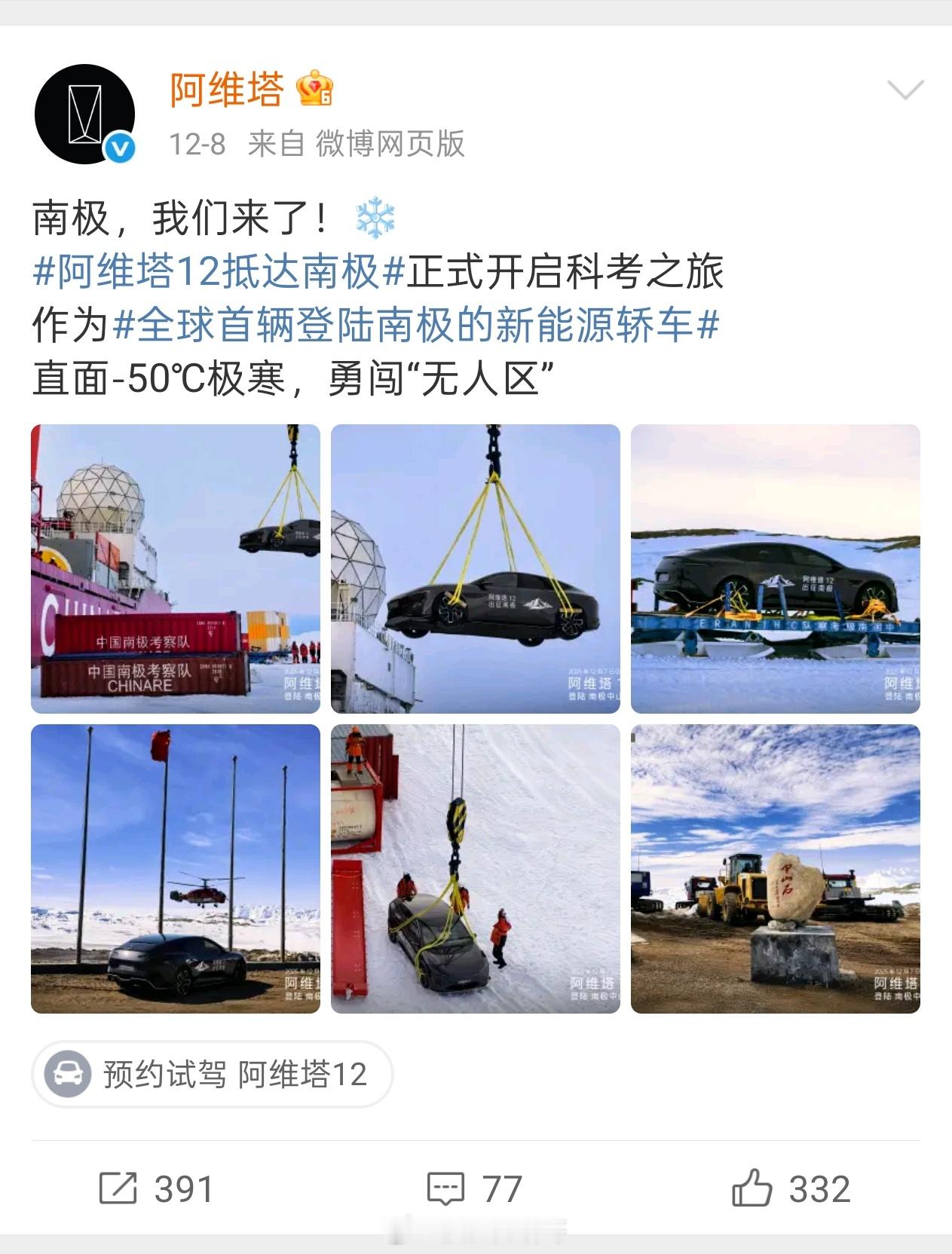 阿维塔官方回应南极之旅争议 这说明消费者越来越对营销的数据上敏感起来了,阿维塔只不过在第一波宣传上,因为信息不完整玩砸了,闹了个小乌龙。因为只强调了“-50℃”和“抵达南极”这种抓眼球的关键词,忽略了发布时期南极此刻12月季节温度的这个关键前提。而这个零下50度的字眼却被网友抓住,变成“夸大挑战”的感觉,所以才引发了不必要的争议。也说明当看到这种有不完整信息时,让子弹飞一下,因为实际上阿维塔抵达南极要测试长达16个月的时间,真长,说明要经历极地不同季节及环境变化的测试。这事也提醒了所有品牌,在追求传播效果时,严谨是第一位的。中国新能源汽车将进行16个月极地测试大v聊车