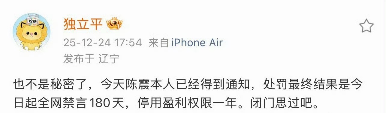 所以这就是陈震最后的处罚结果?前两天还看到他解封的消息呢…不过如果是这么个处罚结果也说得过去