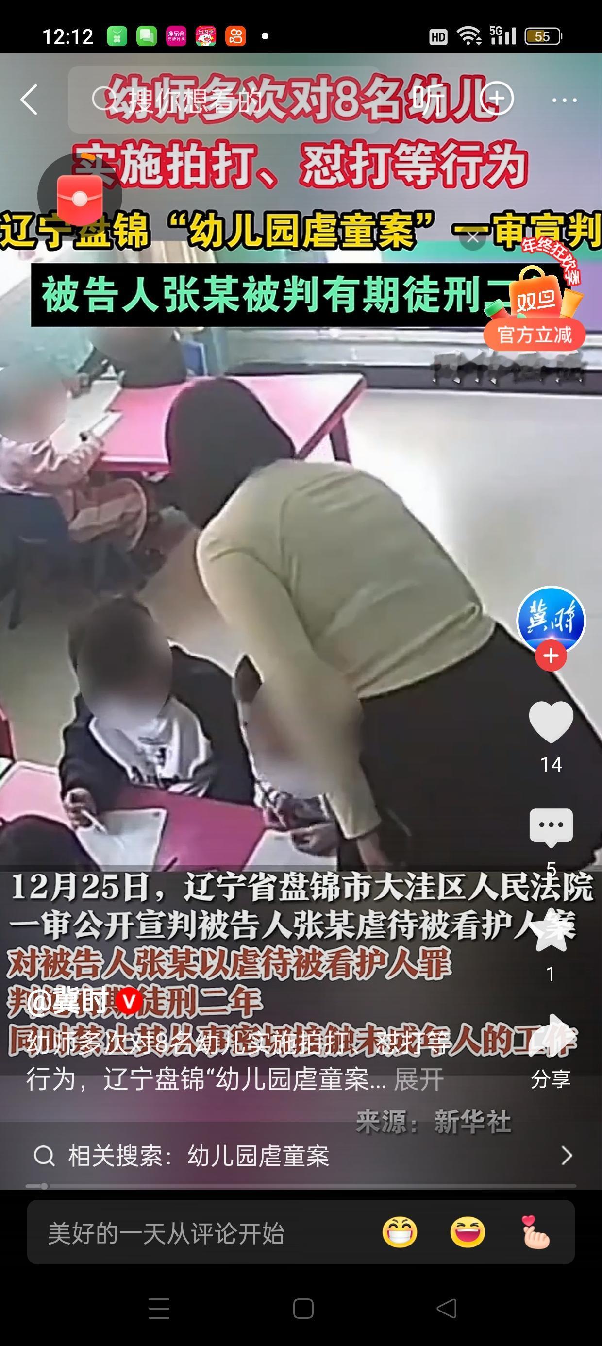 震惊!盘锦“虐童案”一审宣判:被告人张某获刑两年,社会反响强烈! 2025年12月25日,辽宁省盘锦市大洼区人民法院公开宣判了一起备受关注的虐待案件。被告人张某因对被看护人实施虐待行为,被法院判处有期徒刑两年,并禁止其从事与未成年人密切接触的工作。这一判决不仅彰显了法律的严肃性,也引发了社会各界的广泛关注与热烈讨论。 事件起因于多名家长举报,揭露张某在照看被看护人期间存在虐待行为。受害者多为未成年人,行为包括殴打、体罚等,严重侵犯了儿童的身心健康。案件曝光后,迅速引起公众的愤怒与关注,社会各界呼吁加强对看护人员的监管,保障未成年人权益。 经过法院审理,认定张某的行为构成虐待被看护人罪。法院依据相关法律法规,判处张某有期徒刑两年,并禁止其从事与未成年人密切接触的工作,旨在防止类似事件再次发生。判决书强调,保护未成年人权益是社会的共同责任,任何虐待行为都必须受到法律的严惩。 判决公布后,社会各界反响热烈。公众普遍支持法院的判决,认为这是对儿童权益的有力维护。同时,专家呼吁加强对看护人员的培训与管理,完善相关法律法规,建立更加科学的监管机制,确保未成年人在成长环境中得到应有的保护。 此次案件的审判是对违法行为的有力打击,也是对儿童权益保护的一次重要警示。教育部门、社会组织和家庭都应共同努力,营造安全、温暖的成长环境。加强法律宣传,提高从业人员的责任意识,是预防类似事件发生的。 辽宁盘锦“虐童案”一审判决彰显了法律的威严与公正,也提醒我们每个人都应关注儿童的权益,携手构建一个更加安全、关爱的社会环境。每一个孩子都值得拥有一个充满爱与安全的童年,让我们共同努力,守护他们的未来!