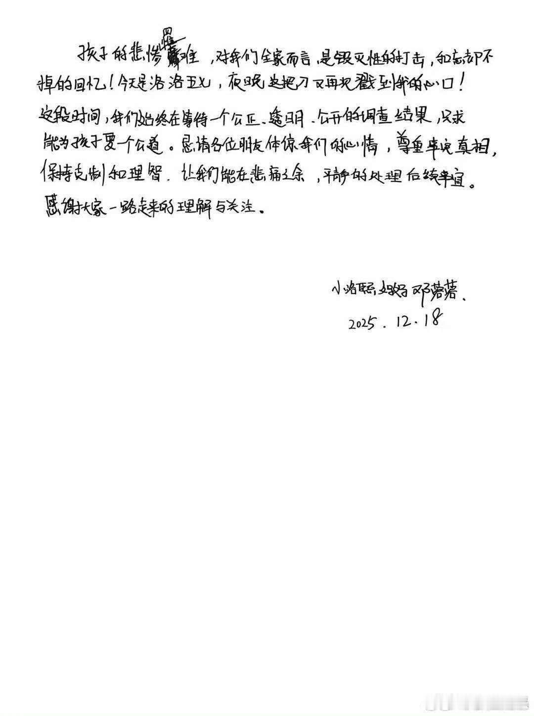 小洛熙妈妈写的文字版澄清小洛熙妈妈文字版澄清小洛熙妈妈写的文字版澄清,今天25号