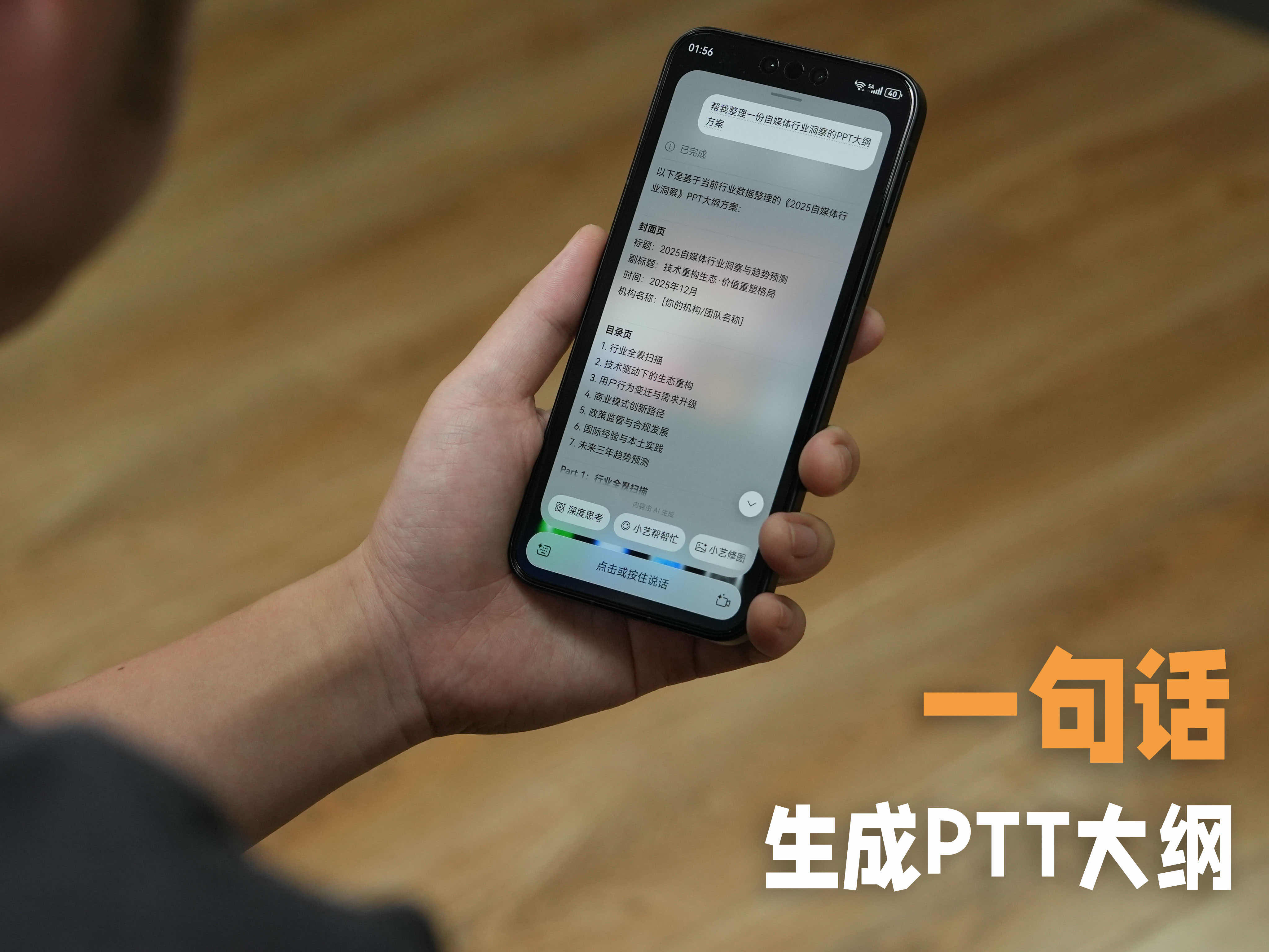 这两天被成都的非遗盛典刷屏了,看着那些精美的蜀绣、热闹的市集照片,心里痒痒的,可惜工作太忙走不开。晚上回家窝在沙发里,随口跟手机念叨了一句:小艺,成都非遗盛典有什么好玩的?帮我介绍下非遗文化呗?没想到小艺娓娓道来,给我讲起了蜀绣的历史,还让小艺帮我推荐了几个线上体验的非遗匠人工作室。那一刻突然觉得,那些看似遥远的传统文化,其实通过小艺的讲解,也可以走进我的日常。这种奇妙的连接感不止一次出现。上周一早会前需要快速汇总项目资料,我对着小艺说:我需要写自媒体行业洞察PPT,帮我整理一份PPT思路大纲。TA就能领会我的意图,帮我快速梳理清楚PPT大纲。最让我惊喜的是上次修图,出去玩背景里到处都是游客,颜色也拍的不好看,我直接跟小艺说帮我P掉路人游客,面部打柔光,TA居然真的理解了,很快就把路人消除得干干净净,还把色调调得舒服又自然。 小艺 微博非遗盛典首位AI员工上岗