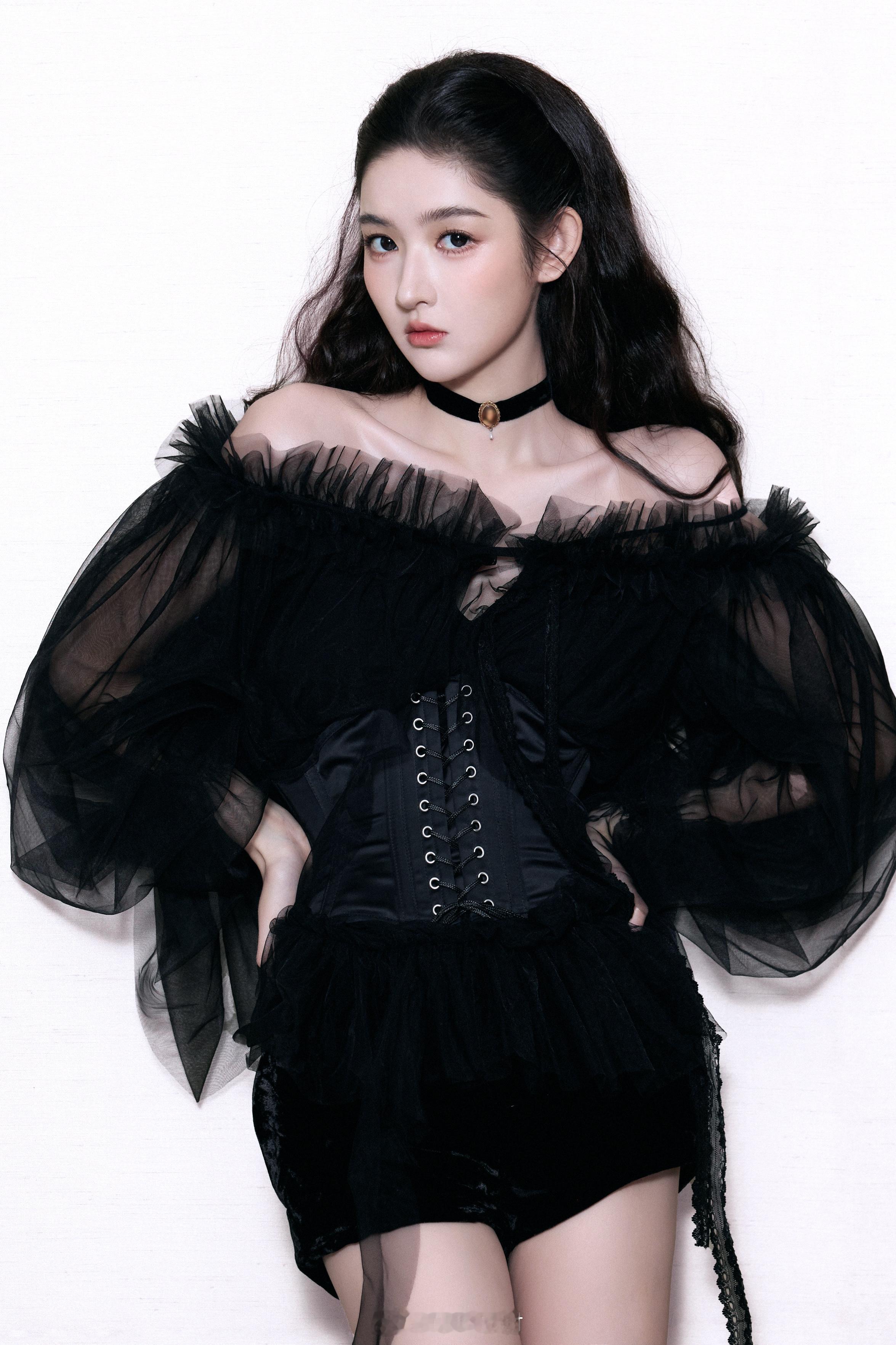 黑色抹胸短裙是氛围感利器,王玉雯一袭裙装亮相,简约剪裁更显身姿窈窕,回眸时的笑意
