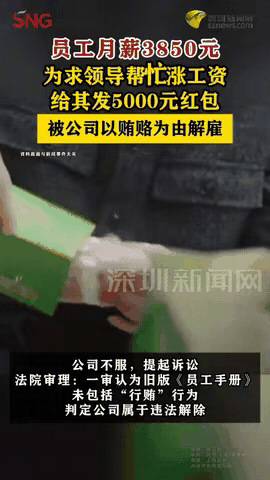 “自作聪明!”安徽,一男子觉得自己每月3850元的工资太低,为了涨薪,他想出一招,分别向3位领导转账1000至2000元,并留言让他们帮忙涨工资。 结果工资不仅没涨,还直接被公司开除。男子不服,以公司违法解除劳动关系为由申请仲裁,索赔23100元,案件几经波折,结局注定,这波操作真是聪明反被聪明误! 大哥辛苦琢磨出来的涨薪的“捷径”,可是他忘了,职场里的捷径,往往都是坑。公司直接以“行贿”开除他,他不服仲裁索赔,一审还赢了,以为能翻盘。 没想到二审反转了——原来他早就签收过新版《员工手册》,上面明确写着向领导行贿谋私利算严重违规,签字就代表认可这些规矩。 高院最后也驳回了他的再审,兜兜转转,钱没花在刀刃上,工作没了,赔偿金也一分没拿到。 职场哪有什么旁门左道能走通?涨薪靠的是实打实的业绩和能力,不是靠送礼讨好。 走捷径的人,终究会被捷径反噬。踏实干活、提升自己,才是打工人最稳的底气。你们说对吗?