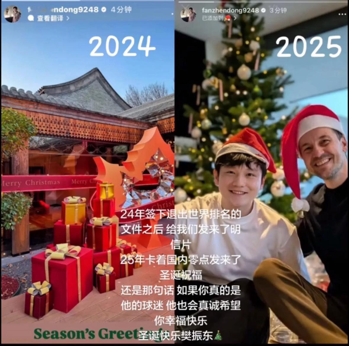 樊振东真的很爱球迷——国内零点卡点送来了圣诞祝福 24年樊振东签下退出世排的文件后, 圣诞节给我们发来了圣诞 明信片, 25年身在异国他乡, 卡着国内零点发来的圣诞祝福, 樊振东身在国外, 心在国内, 他真的把球迷放在心里, 卡点送祝福太贴心, 谁说樊振东不在意他的球迷, 卡点发祝福, 还要精准的卡住国内的零点, 这不是在意,是什么🤔……