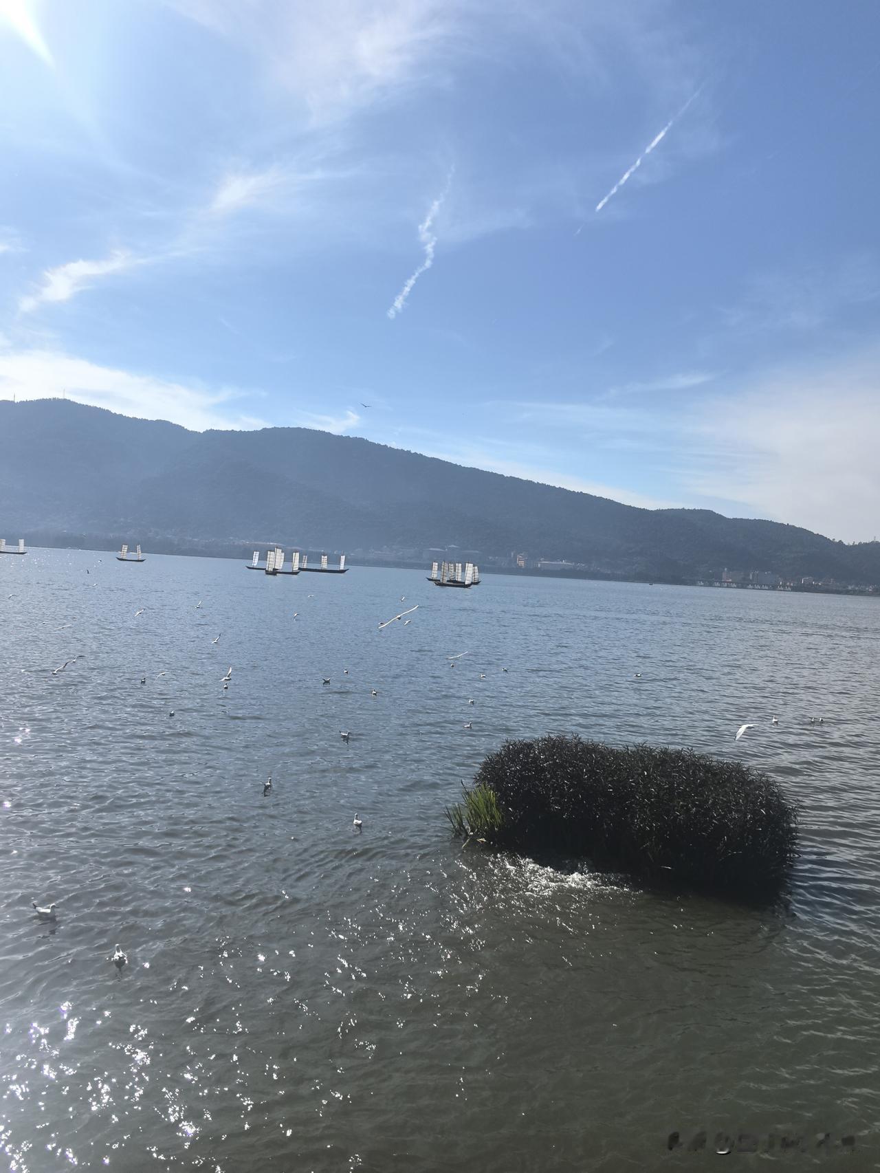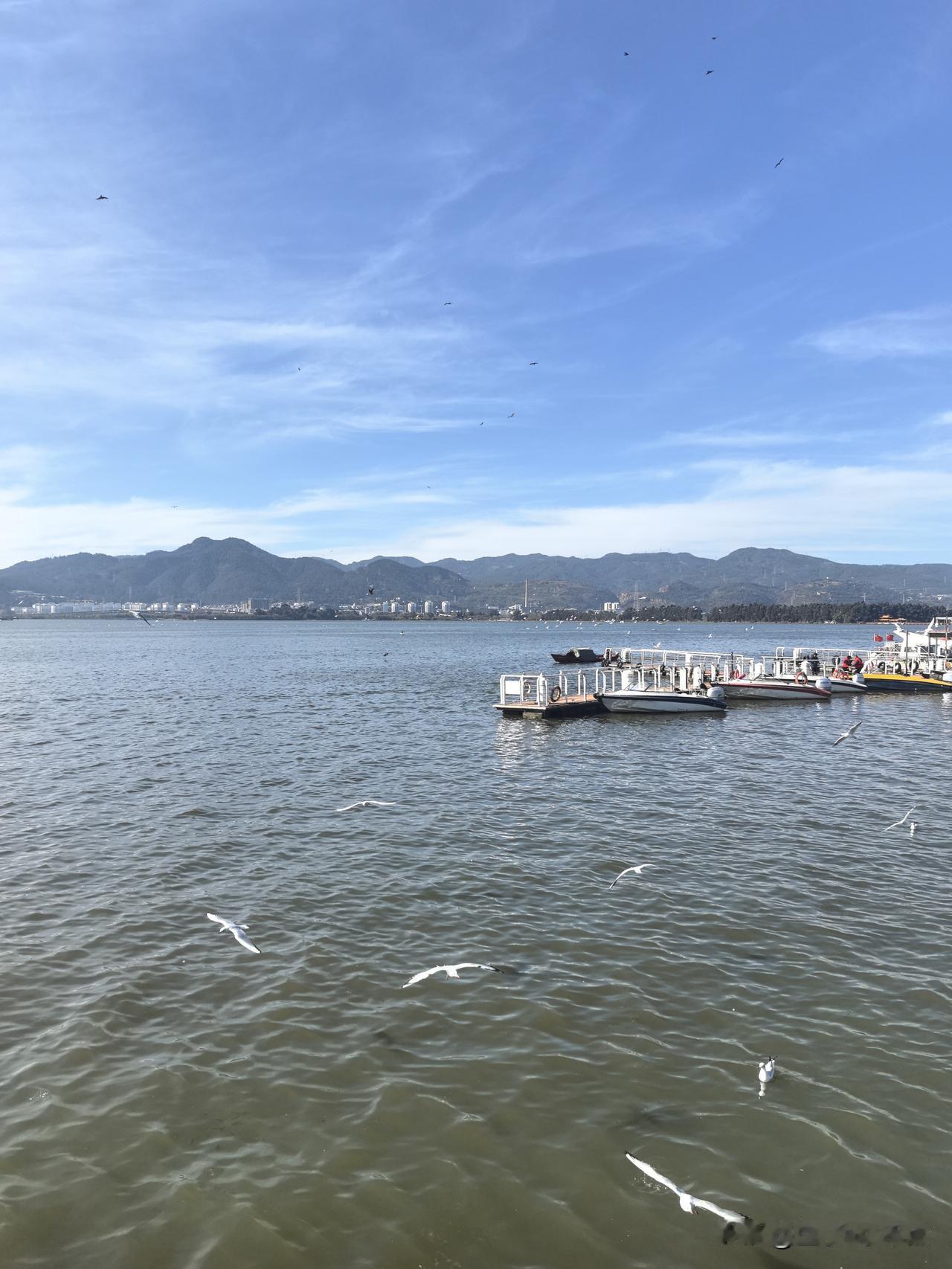 在昆明随手一拍,都是美景。我趁着闲暇到了滇池畔,这里天气宜人,景色绝美,感觉自己偷得了浮生半日闲。 冬天来滇池边,就能看到壮观的海鸥潮。成群海鸥像白色风暴,它们或翱翔或低掠,以西山为幕布,滇池为舞台,当芭蕾舞者。不过现在游客比海鸥还多,大家都想喂喂海鸥、拍拍美照。这样的昆明,谁能不爱呢?