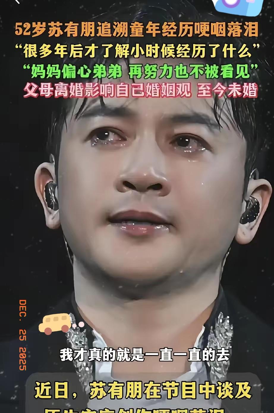 苏有朋52岁单身的真相,听完直接破防了!上节目被追问婚姻,他终于摊牌:爸妈离婚又复婚却分居,家里常年吵吵闹闹,自己从小没被爸爸抱过,对婚姻只剩满心迷茫。 这段采访被剪成短视频刷爆全网,三亿阅读量里,有人心疼他的原生家庭创伤,有人却怼他“矫情”。可谁能懂,当他红着眼说出那句“从没被爸爸抱过”时,哪里还有什么偶像光环,不过是个困在童年阴影里的孩子。 原生家庭的烙印,从来不是轻易能抹去的。有人急着用婚姻逃离,有人被迫重复父母的老路,而苏有朋选择坦诚面对恐惧,不勉强自己踏入婚姻,这何尝不是一种清醒? 结婚从来不是人生的必答题,比起硬凑的圆满,正视伤口、忠于内心才更需要勇气。你怎么看待原生家庭对婚恋观的影响?来评论区说说你的想法~