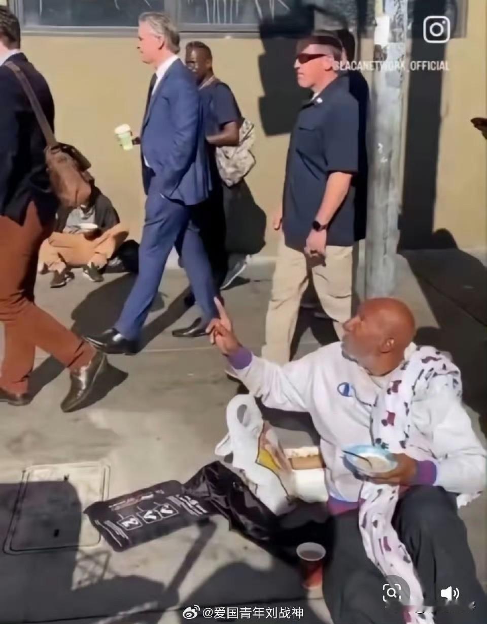 美国加州州长从美国街头流浪汉身旁若无其事地走过,看来是对美国满大街流浪汉司空见惯了!
