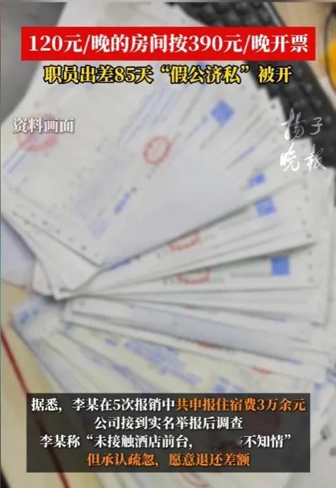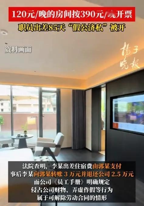 “自毁前程!”江苏南京,男子出差住宿标准不超400元/晚,但他却住120元/晚的房间,开390元/晚的发票。出差85天,报销过后,男子的腰包鼓了起来。不曾想,男子被实名举报了。经过调查,公司认定男子严重违反公司规章制度,遂将其开除。男子认为自己被陷害了,还退了钱,公司属于违法解除。法院这样判! 江苏南京一名男子,本有着稳定的工作,却因为一时贪念动了歪心思,在出差报销上耍小聪明,最终不仅丢了饭碗,还闹上了法庭。这场看似“一本万利”的操作,最终变成了自毁前程的闹剧,让不少职场人看完直呼警醒。 事情的起因,源于男子的一次长期出差。按照公司规定,他的出差住宿标准为每晚不超过400元,这笔费用可以凭正规发票实报实销。 这本是公司为保障员工出差期间基本生活的正常福利,却被他当成了“捞钱”的机会。在长达85天的出差过程中,男子没有选择符合标准的住宿,而是特意找了每晚仅需120元的廉价房间落脚。 住便宜的房间,却没打算按实际金额报销。每次入住时,他都会跟店家协商,让对方开具每晚390元的发票,这个金额既没超过公司400元的上限,又能最大限度地扩大差价。 就这样,每晚他都能从报销中套取270元的差额,85天下来,累计套取的金额达到2万余元,报销款项到账后,他的腰包实实在在地鼓了起来。 男子原以为自己的操作天衣无缝,既能节省住宿开支,又能额外赚一笔,却没料到纸终究包不住火。没过多久,就有人实名向公司举报了他的违规报销行为。 公司接到举报后,立刻展开了调查,通过核查他提交的报销发票、比对住宿记录,再结合实地走访核实,很快就查清了事情的全部真相。 调查结果显示,男子确实存在虚报住宿费用、套取公司资金的行为,而且金额较大,情节较为严重,已经明显违反了公司的规章制度。 基于此,公司毫不留情地作出了开除的决定,解除了与他的劳动合同。突如其来的处分让男子慌了神,他始终觉得自己是被人陷害,为了挽回工作,他主动将套取的资金全部退还了公司。 可即便退了钱,公司也没有改变开除的决定。男子越想越不甘心,认为自己已经弥补了过错,公司在这种情况下依旧解除劳动合同,属于违法解除。 为了维护自己的“权益”,他一纸诉状将公司告上了法庭,要求公司支付违法解除劳动合同的赔偿金。 法庭上,双方展开了激烈的争辩。男子坚持认为,自己已经退还了全部非法所得,没有给公司造成实际损失,公司的开除决定过于严苛,不符合法律规定。 而公司方则提交了完整的证据链,包括公司规章制度、男子的报销凭证、调查记录等,明确表示男子的虚报行为已经构成严重违纪,公司有权依据规章制度解除劳动合同。 法官在审理过程中,重点核查了案件的关键事实和相关法律依据。法院认为,劳动者在履行劳动合同过程中,应当遵守用人单位的规章制度,恪守诚实信用原则。 男子利用职务便利,通过虚开发票的方式套取公司资金,这种行为不仅违反了公司的规章制度,也违背了基本的职业操守。 即便他事后退还了套取的资金,也不能改变其已经实施了严重违纪行为的事实。公司依据经过民主程序制定且已向劳动者公示的规章制度, 作出解除劳动合同的决定,事实清楚、证据充分,符合法律规定。最终,法院依法驳回了男子的全部诉讼请求,认定公司的解除行为合法有效。 一场贪念引发的闹剧,以男子彻底败诉告终。原本稳定的工作没了,还要背负违纪的不良记录,给未来的职业发展蒙上了阴影。 这个案例也给所有职场人提了个醒,职场之中诚信为本,任何试图钻规则空子、触碰底线的行为,最终都只会自食恶果。对此,你们有什么看法,欢迎评论留言~