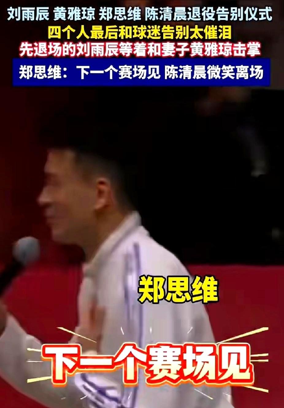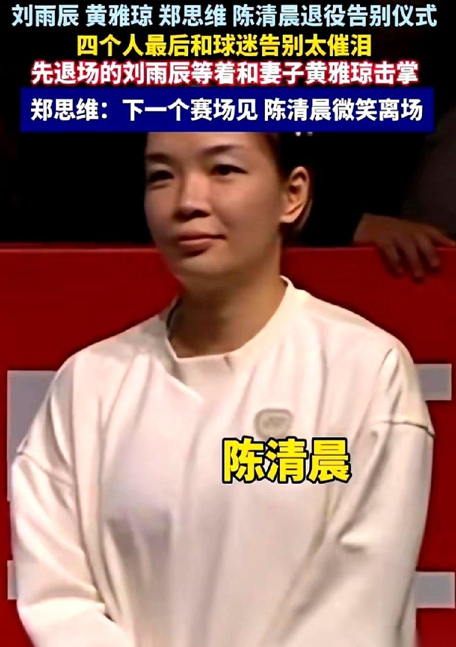 我跟你讲,什么颁奖啊、捧杯啊,其实都没那么戳我。 最要命的,是最后陈清晨盯着国家队那张大合影的眼神。 真的,就那几秒钟,感觉整个世界都安静了。那里面是什么?是她的整个青春啊。是日复一日的训练,是一起扛过的伤病,是一起傻笑过的瞬间。 旁边她的搭档贾一凡,那个在场上永远霸气侧漏的“凡姐”,直接哭成泪人。这种感觉我太懂了,就像你身体的一部分,突然要被剥离了。以后陪在你身边的,不再是她了。 太狠了。一下子,四个人。 “雅思组合”算是彻底圆满了,东京的遗憾,巴黎的圆梦,金牌挂在胸前,笑着说再见。多好。 还有刘雨辰和黄雅琼,从队友到情侣,现在又牵着手一起告别赛场。这哪是退役啊,这是开启人生的新副本了。 以前总觉得,运动员最辉煌的时刻,是站上领奖台的那一刻。 现在才明白,不是。 是他们放下球拍,决定跟过去那个拼尽全力的自己,好好告别的那一刻。 把青春,把荣耀,把伤病,把所有不甘和热爱,都郑重地留在了那片场地上。 然后转身,去过一个普通人的,人生下半场。