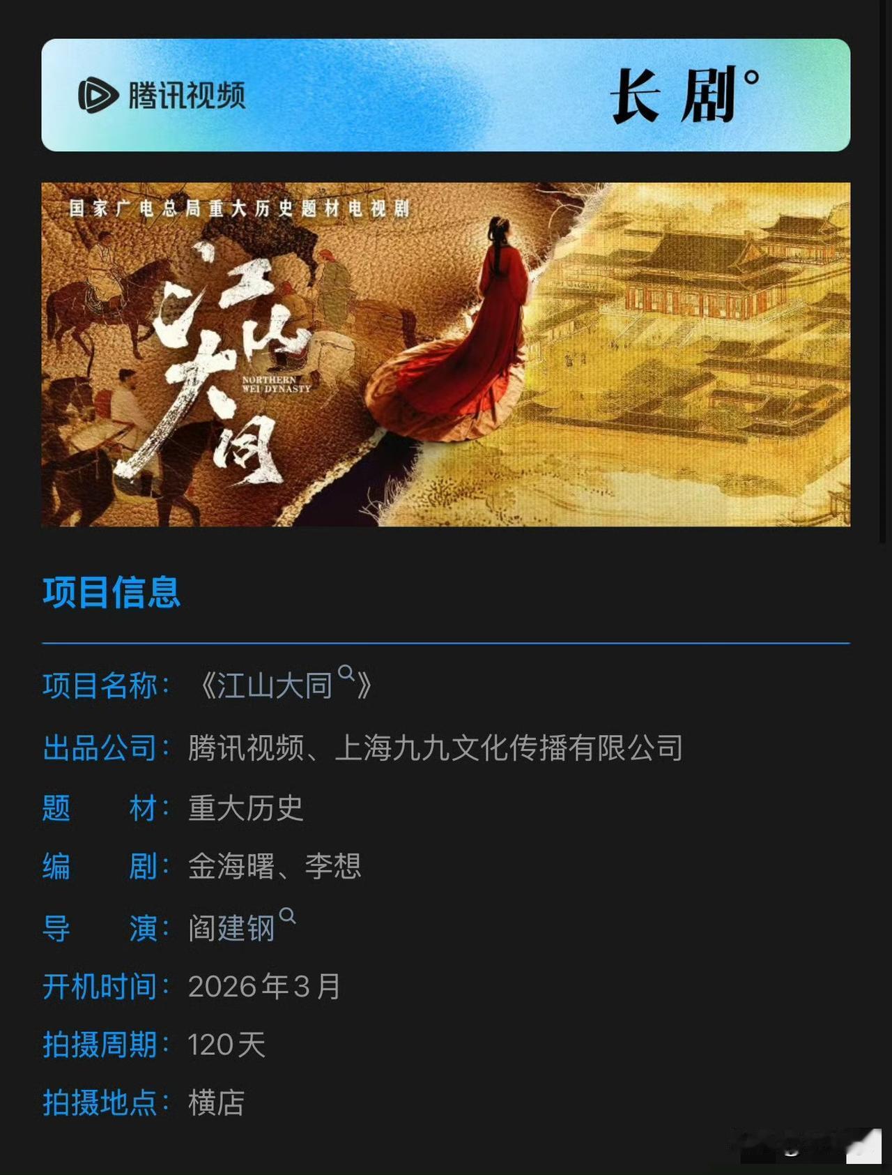 杨幂这次真杀疯了!正剧女王之位就靠它。杨幂终于拿下广电重点历史大剧《江山大同》,这回可不是古偶玛丽苏,而是妥妥的正统历史题材! 腾讯视频天璇工作室亲自护航,就是那个拍出《三体》《繁花》《庆余年2》的王者团队。 这配置直接炸了!