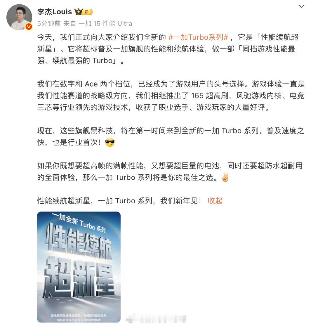 一加Turbo系列要来了~定位「性能续航超新星」,带来了同档位最强续航,还把价位段里前所未有的游戏体验给安排明白了!下个月发布,大家可以期待一下~