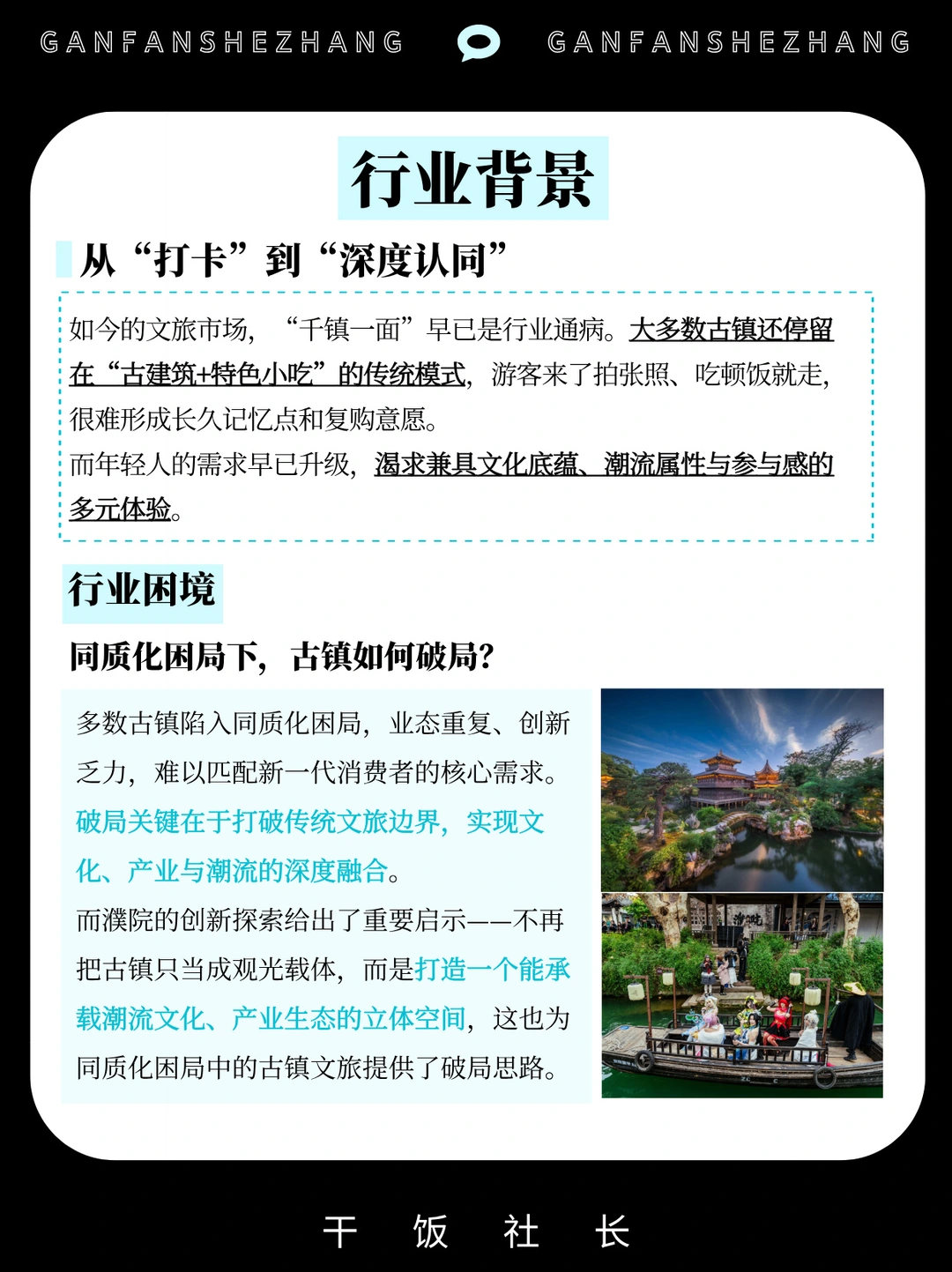 当文旅行业陷入千镇一面的同质化困局,年轻人早已不再满足于“看古建筑、吃特色小吃” 的浅层观光,转而追捧“有文化、有产业、有潮流”的深度体验场。