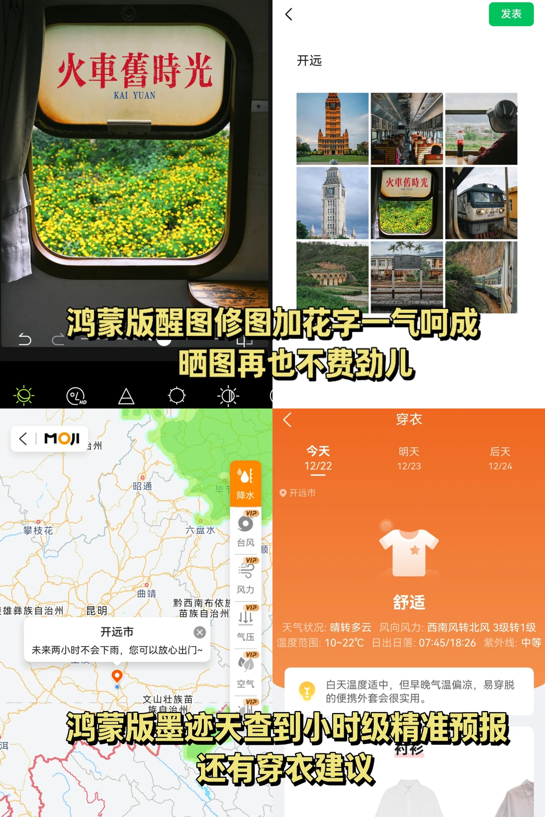 鸿蒙生态一路托底,从天气、交通、觅食到记账、出片,全都安排得明明白白,让旅行省心又好玩。不得不说经过一年的冲刺适配,感觉鸿蒙应用已成熟,应用适配度已超过95%,出去玩儿使用好用又安心,快来一起用起来,超多独家体验等你解锁~