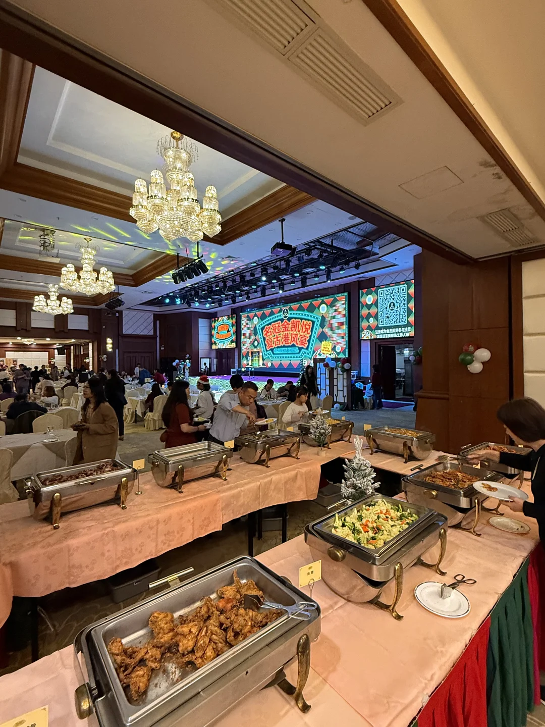 一进门就被圣诞氛围拿捏住,复古港风,还有圣诞🎅和帅帅oppa! 怀旧金曲 live超有氛围感,边吃边听音乐,幸福感直接拉满!! . 自助菜品也丰富: 🦃 圣诞烤火鸡,烧鹅,烧乳猪节日感十足, 外皮微焦,里面多汁!! 🍰 树根蛋糕:圣诞必备甜品,巧克力味浓郁,颜值也很高。 🍣 整条现切挪威三文鱼:现场切割仪式感满满!! . 还有抽奖活动,气氛到位🎅 好羡慕大奖是全年住套房🆓 太豪气了吧!!