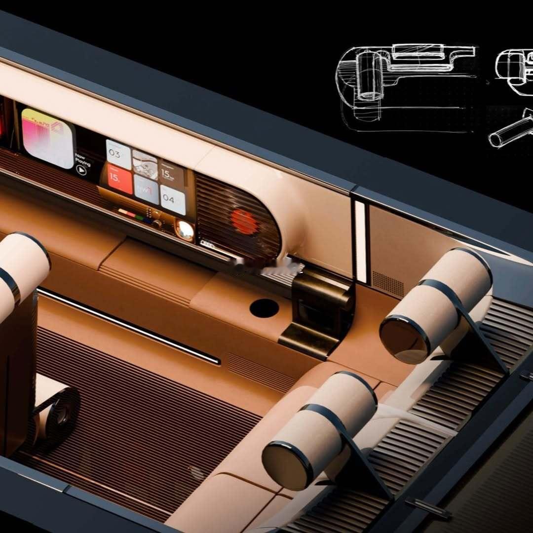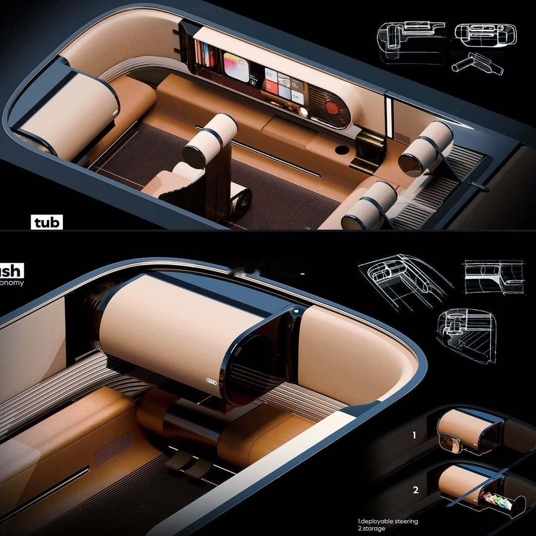 探索奥迪 Radical Next 设计语言的豪华内饰愿景,创造一个温馨的空间。汽车设计工业设计