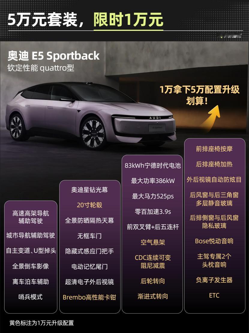 汽车这东西,早就不只是代步了,更像一个天天陪着你的搭子。上班通勤它靠谱,周末出游它懂你,既能扛生活,也能装下诗和远方。奥迪E5你的全能搭子,就是那种啥场景都能接得住的全能型选手。外观星钻光幕一亮,灯厂那味儿立马回来了。不只是好看,是那种一眼就让人心情变好的设计,情绪价值直接拉满。坐进车里也不敷衍。豪华用料 + 舒适科技全都安排上,质感摸得到,科技用得顺。全新的 AUDI OS 系统,加上 8295 车规级芯片,反应快、逻辑清楚,不用学就会上,像多了个懂你的奥迪小助手。开起来更是重点。前后双电机,加上电动版满血 quattro 四驱,通勤时稳得很,山路一踩又很猛。3.4 秒的加速不是炫技,是你想快的时候它真的给得上;毫秒级扭矩分配,弯道里那种贴地感,很有奥迪味儿。一句话总结:日常好开、颜值在线、性能不留遗憾。生活怎么过,它就怎么配合。奥迪 E5 Sportback,确实是那种怎么搭都好搭的全能搭子。大v聊车