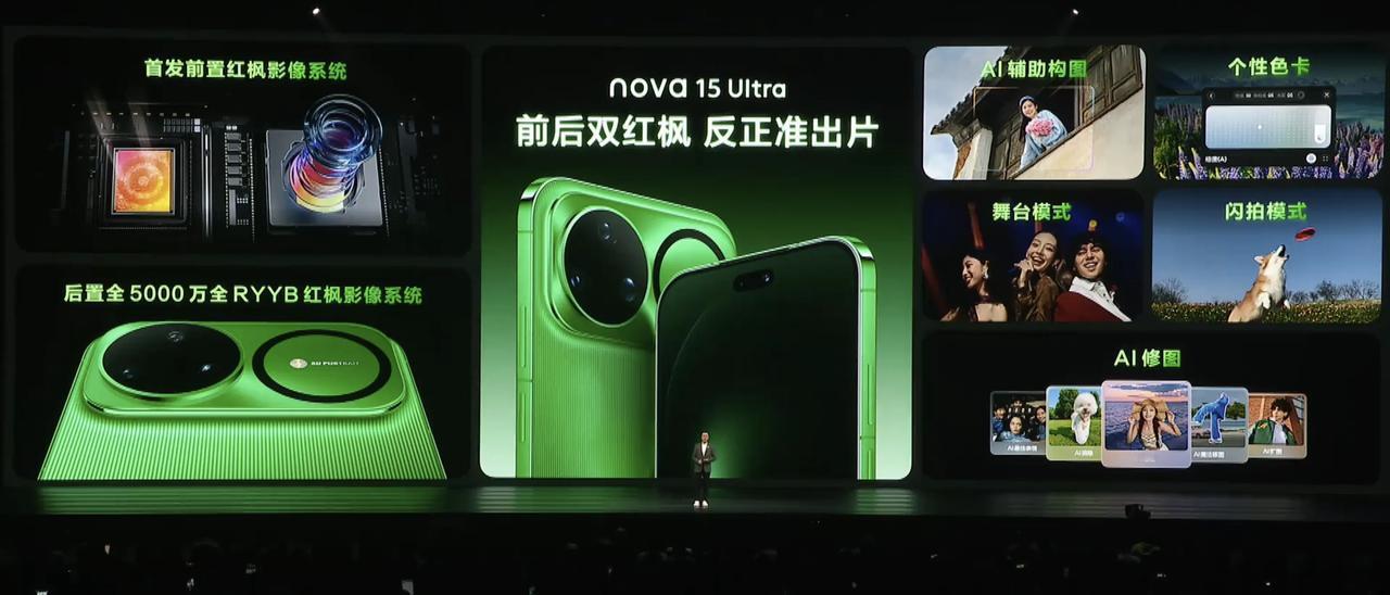 如果说在今年的新品手机当中让我选一个,那一定是nova 15系列,了解完他的配置之后,超级nova真的太让人心动了。 在12月25日10:08,nova 15系列正式开售,nova 15、nova 15 Pro和nova 15 Ultra起售价分别为2699元、3499元、4199元,这个价格在行业中还算是有诚意的。在影像方面,首次前后置均搭载红枫原色镜头,前置自拍与后置拍摄都能享受到一致的高品质色彩表现,而且这一次前置镜头进光量也非常的大,所以在拍摄上,在暗光环境下也能拍摄出清晰的照片。 另外还有AI沾色修图、小艺帮帮忙等智慧功能实用又省心,新增的舞台模式,复杂光源下也能拍出精彩照片。续航也超能打,6500mAh大电池搭配100W快充,nova 15 Ultra还有50W无线快充。更为吸引我关注的就是麒麟9010S芯片,与鸿蒙6系统深度协同,在性能上也大可放心。而且这次真的是全系升级,还能叠加鸿蒙日日新红包以及800元新机权益礼包和249元care+,非常具有入手价值。
