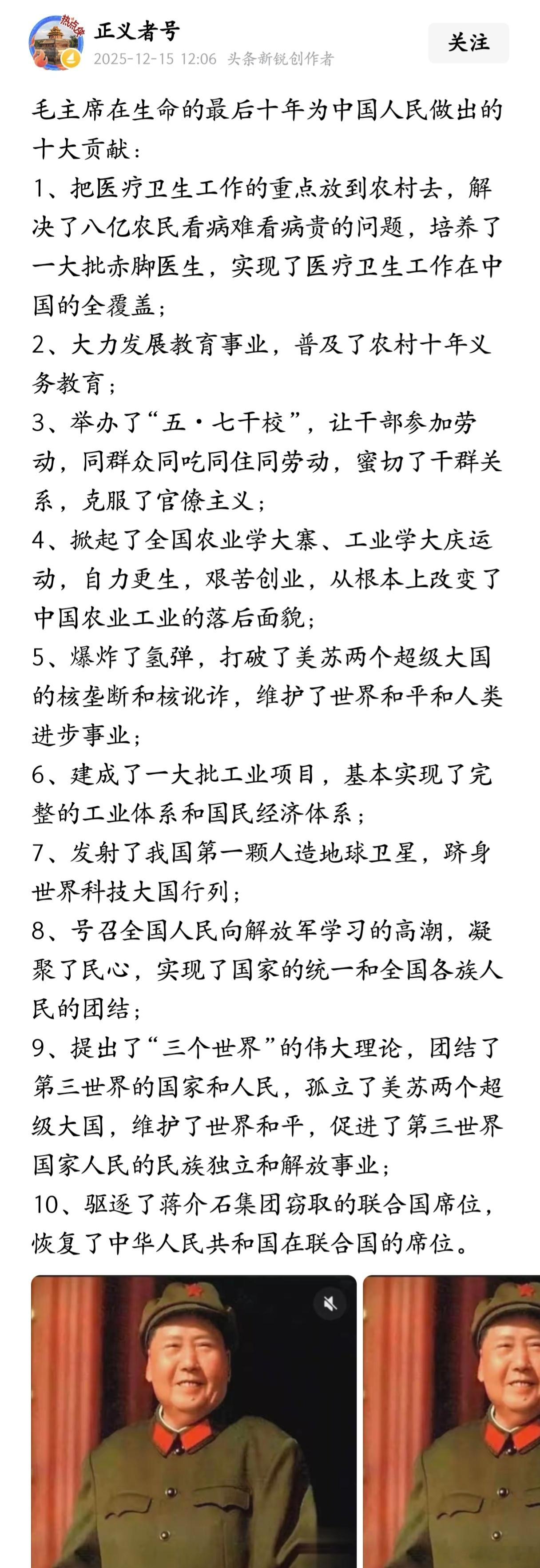 毛主席在生命的最后十年为中国人民做出的十大贡献: