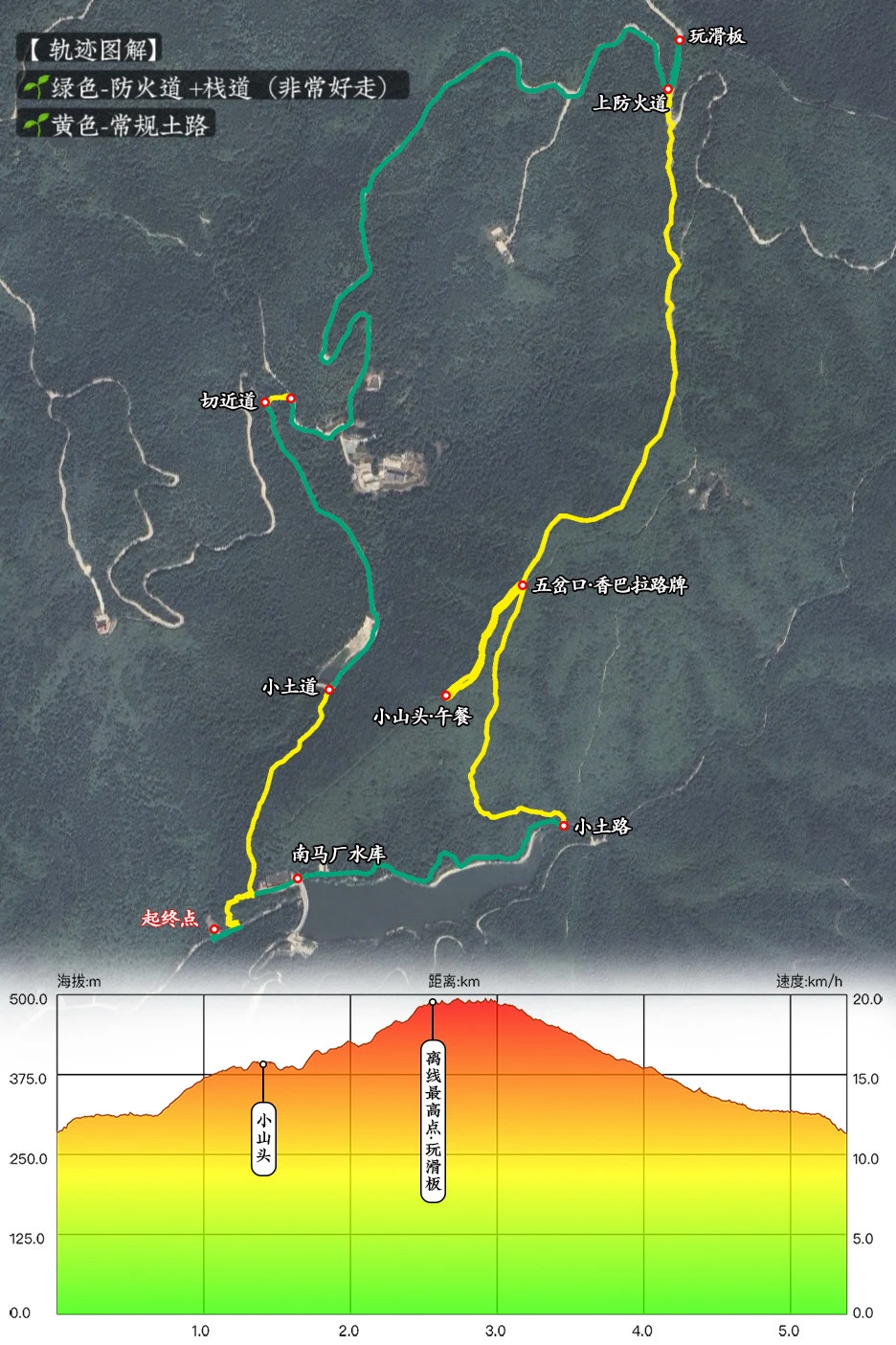 ❺小滑板玩够了,太阳要下山了,我们也就一路沿防火道下山回起点了(小部分路段切了近道)