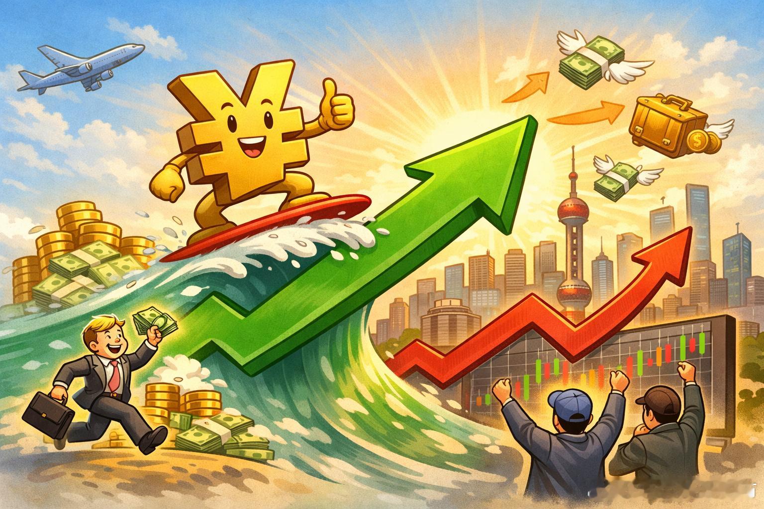 今天在岸、离岸人民币同步走强,离岸率先升破7.0、盘中触及6.9985,这种“先在离岸定价、再向在岸传导”的动作,本质上是在告诉市场,海外资金对中国风险资产的定价在变得更积极。人民币一旦进入升值通道,外资买入人民币资产时的汇兑预期从拖累变成加分,风险溢价随之下行,增量资金更敢加仓、也更愿意拉久期;与此同时,企业结汇与跨境资金回流会在强势汇率下形成顺风,推动“资金—汇率—资产价格”出现正反馈,行情才更容易从结构性走向全面性。历史复盘也能看到,人民币升值周期里,A股更容易处在偏牛的运行区间,外资往往成为关键的增量变量。人民币升值