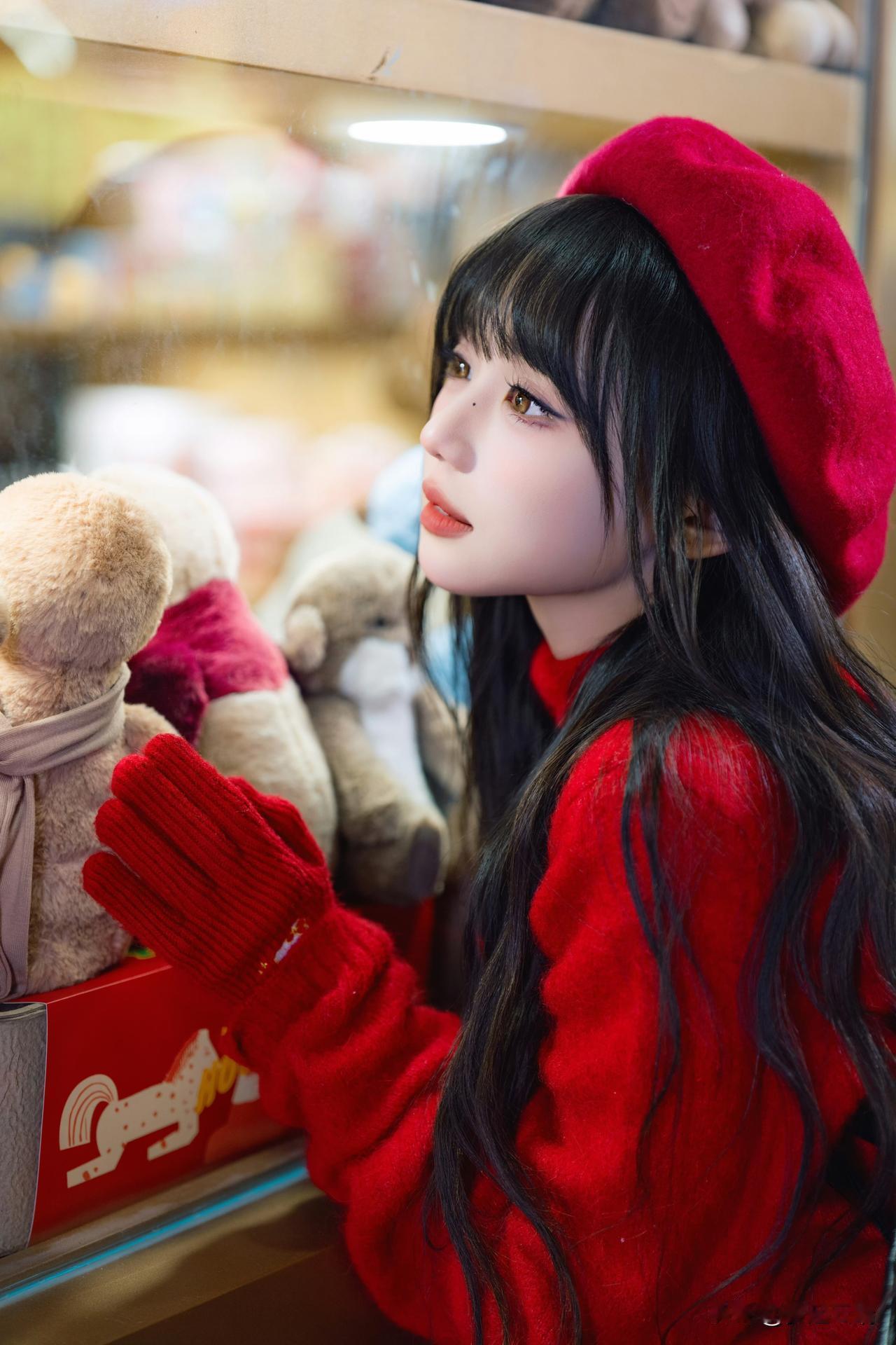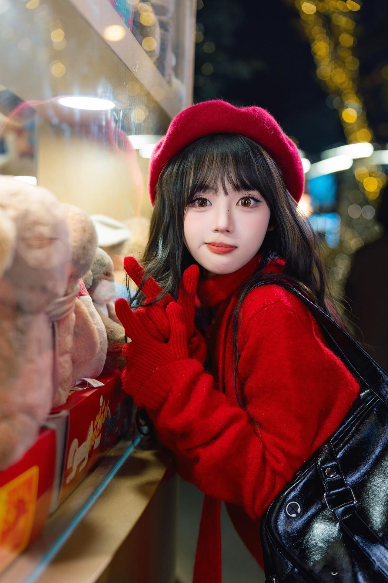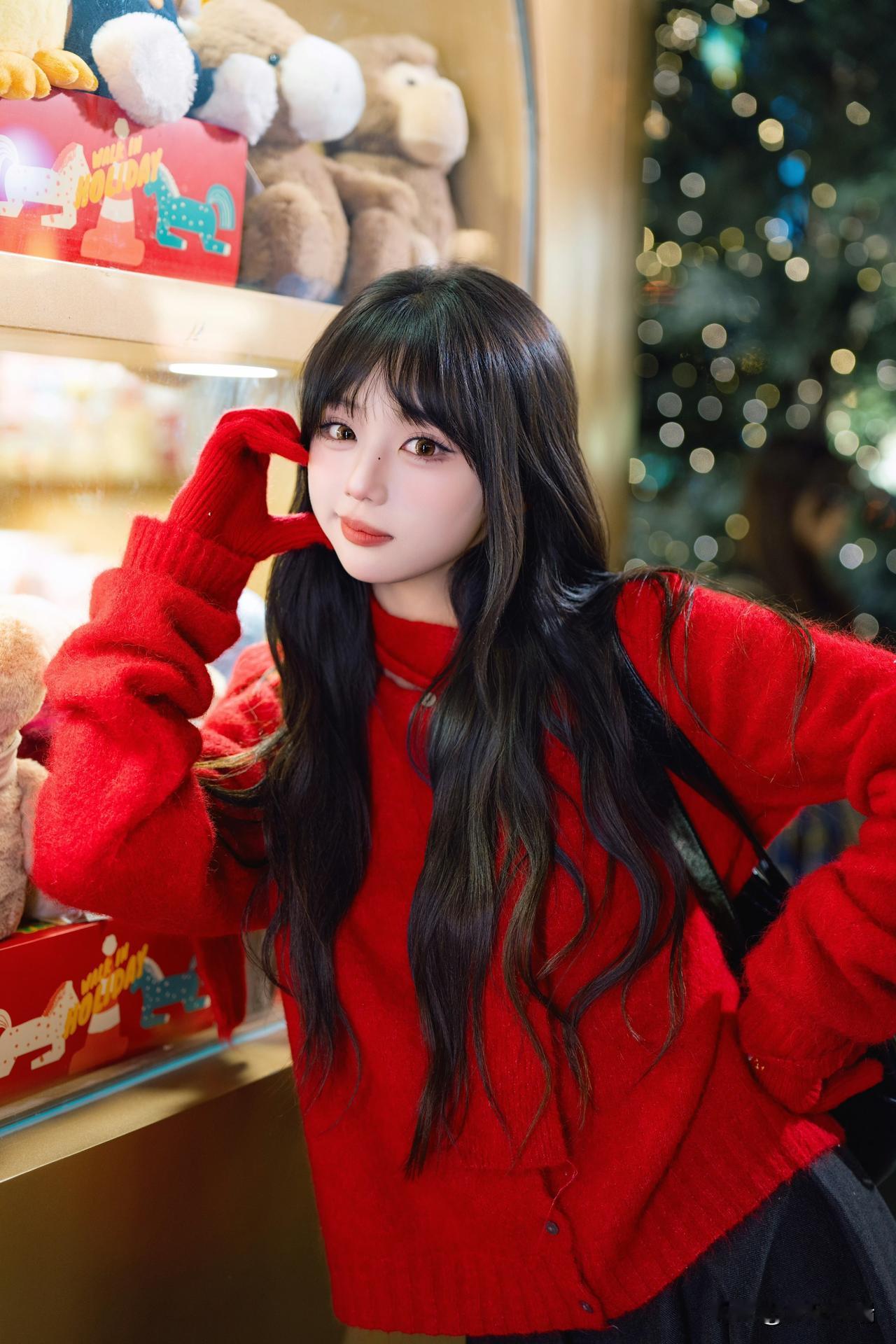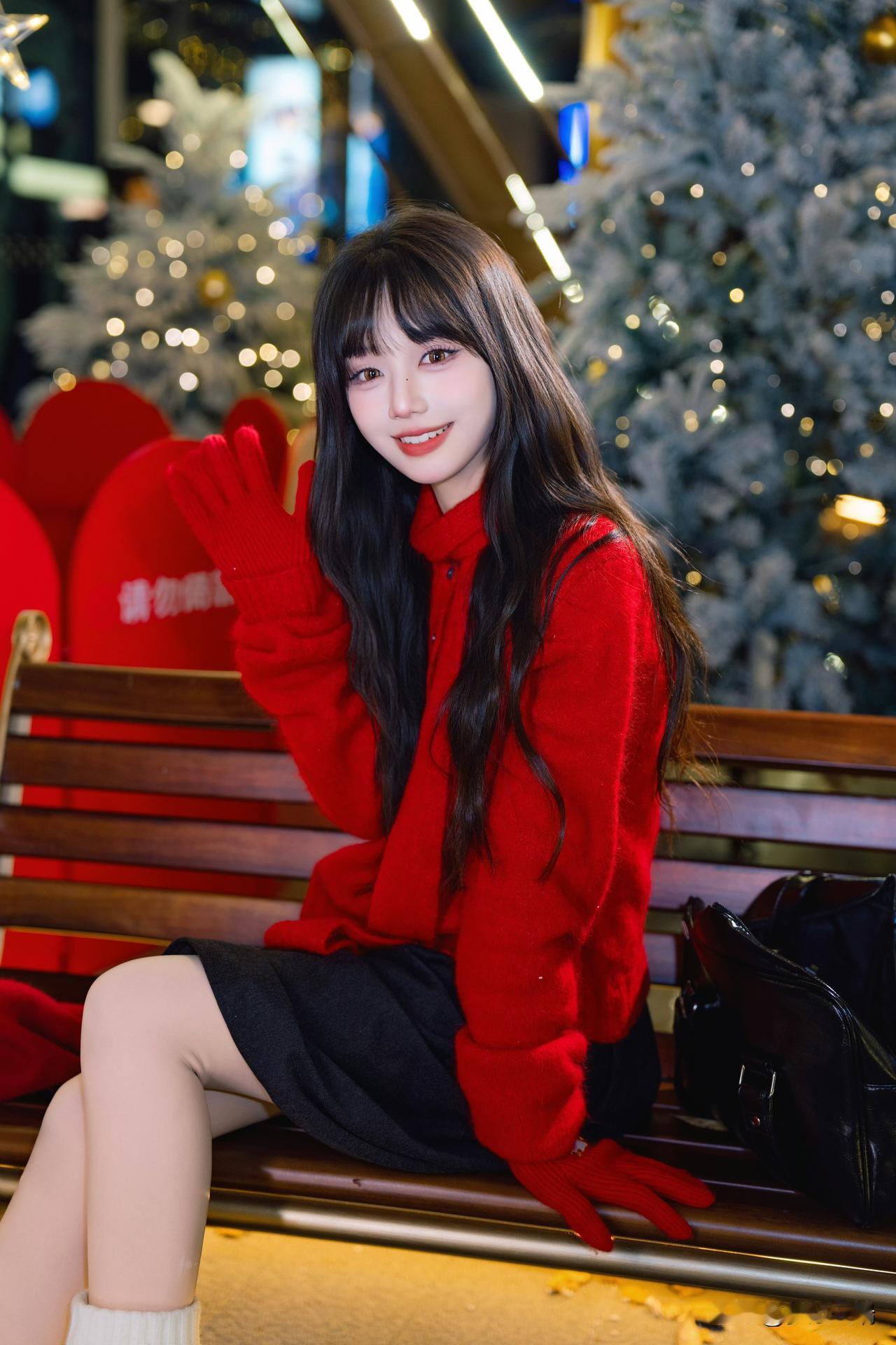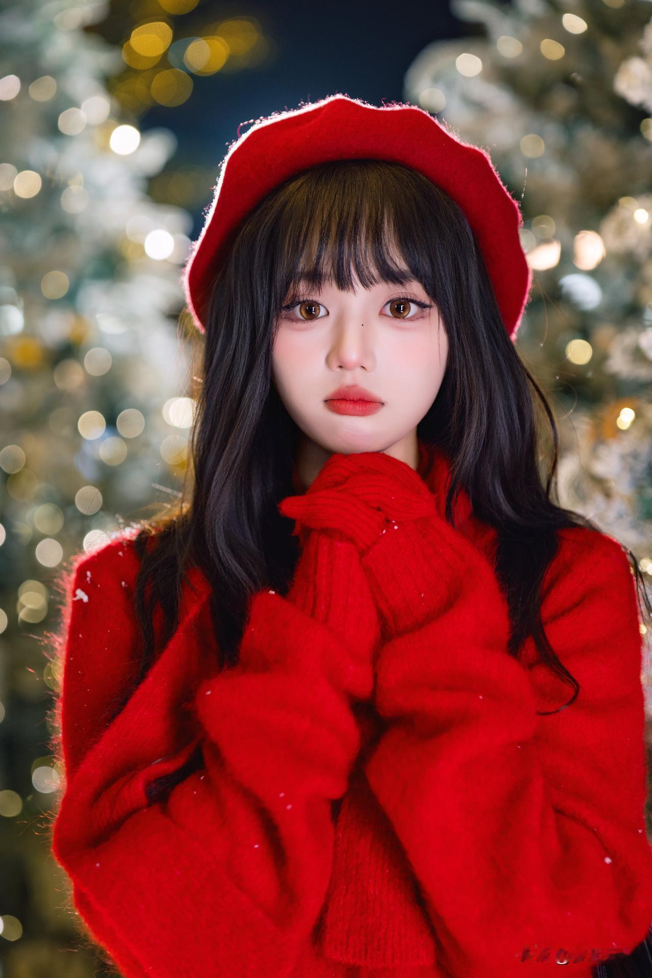 圣诞氛围满满,甜美少女与节日灯饰的完美结合!🎄✨