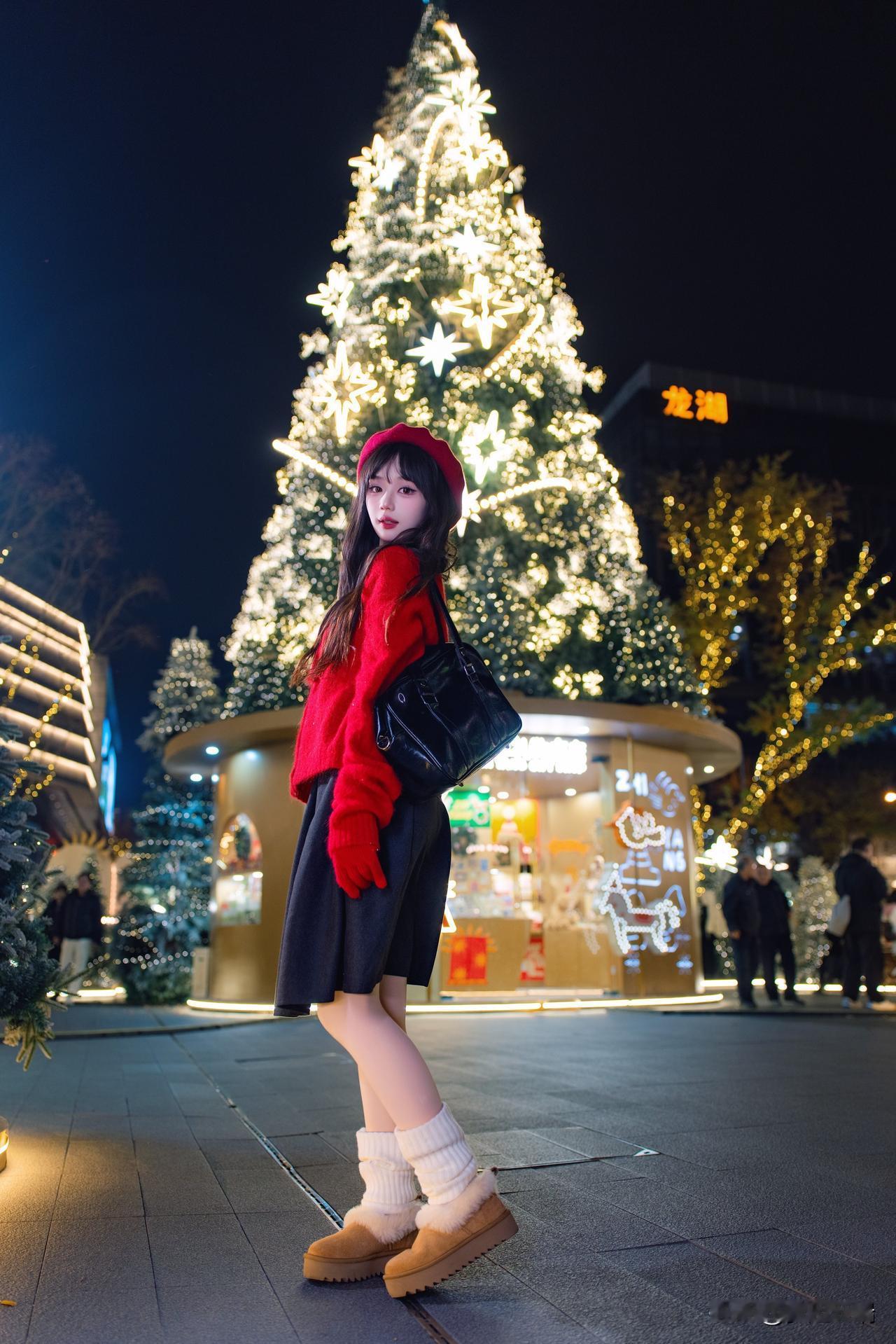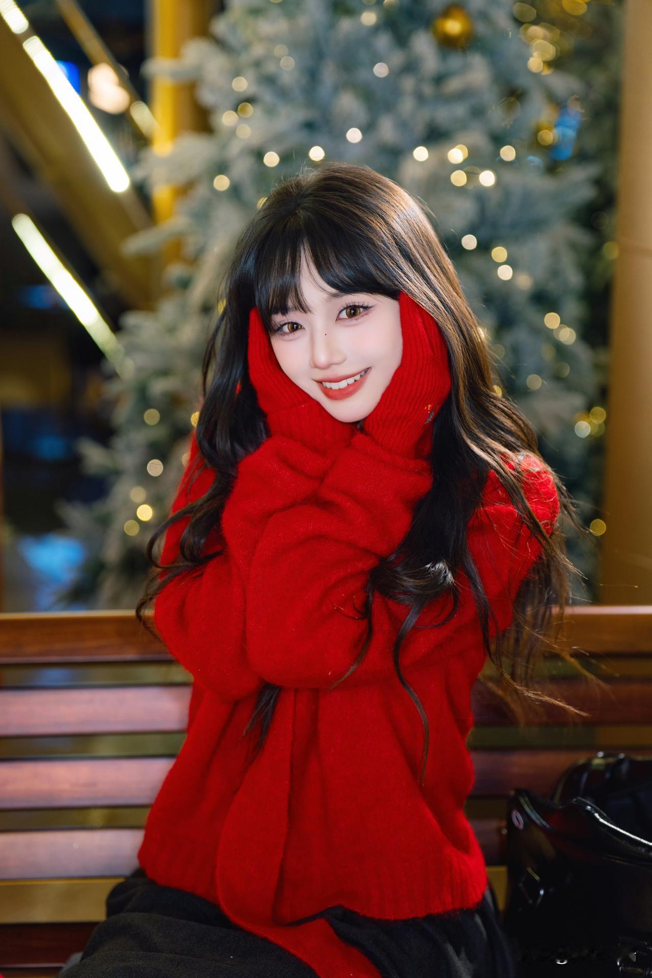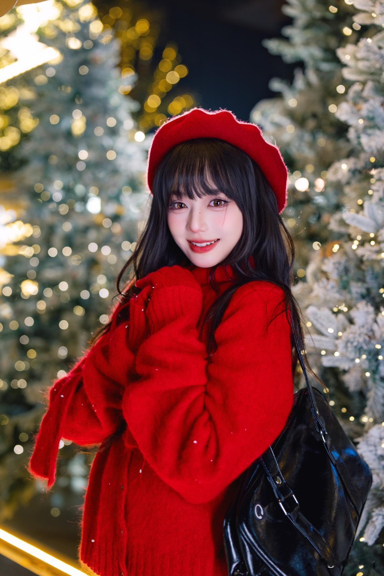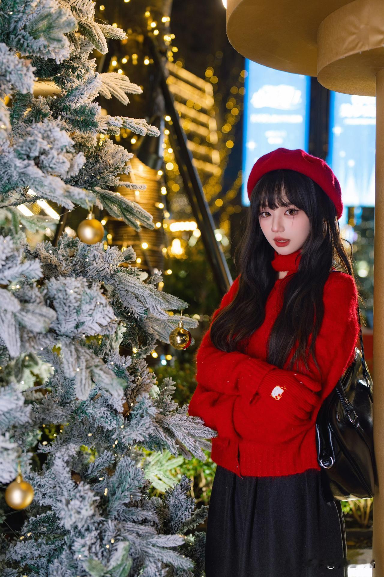 圣诞氛围满满,白色穿搭与圣诞树相得益彰,甜美又温馨!🎄💕