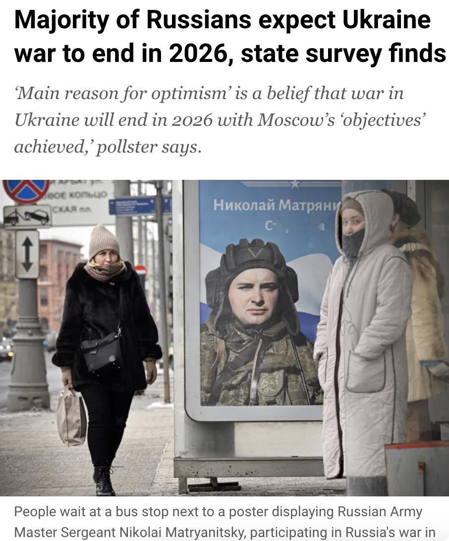 外媒:俄罗斯国家研究中心的调查显示,大多数俄罗斯人预计俄乌战争将在2026年结束。 调查发现,70%的受访者对2026年持乐观态度,认为俄罗斯将取得“成功”,其中55%的人将希望寄托于俄乌冲突的结束。 俄罗斯人对战争的乐观主要基于俄罗斯军事行动的推进以及美国对乌克兰战争支持的减弱。此外,乌克兰总统泽连斯基表示愿意从东部工业区撤军以换取和平,但俄罗斯尚未同意从占领地区撤军。